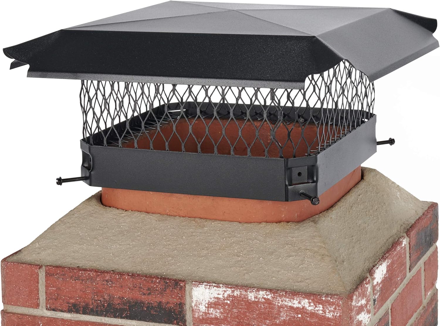 The stainless steel draft king chimney cover by hy-c company is constructed of 100% 304 stainless steel and built to withstand the toughest conditions. Ideal for oil, coal, or heavy wood burners or for any application within 25 miles of a saltwater coast. High quality construction includes a 24 gauge stainless steel hood with scalloped corners and roll-formed edges, 18 gauge 3/4 inch expanded stainless steel mesh and 16 gauge stainless steel base for extra strength. Using slotted hex-head bolts, the unique corner mounting attachment design of a draft king chimney cover provides the securest possible fit to a masonry flue tile. Lifetime limited warranty.