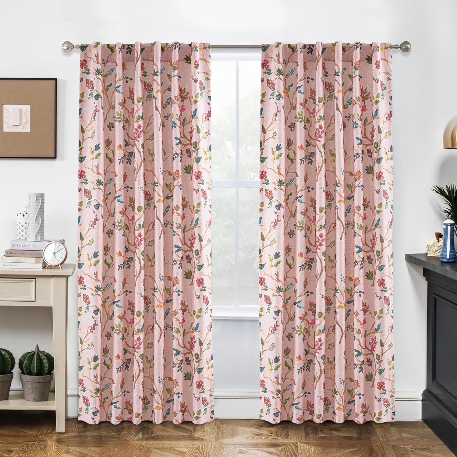 This curtain looks very lovely, colorful tree pattern design will enliven your house immediately. Pink background color will soften the atmosphere of your house, enhance your home style, make your house look more lovely. It will prevent light going through your window, protect your skin and furniture from harmful UV rays.