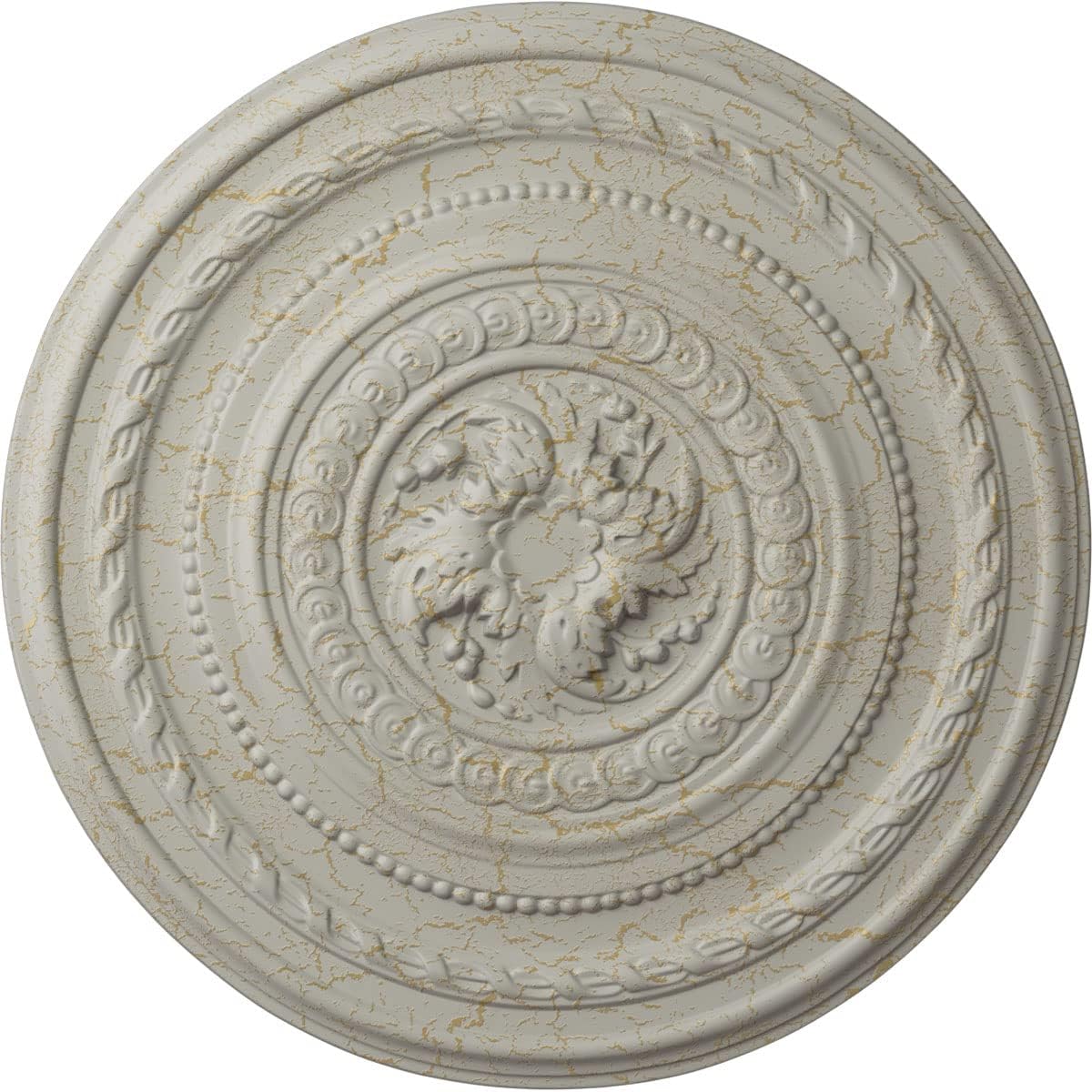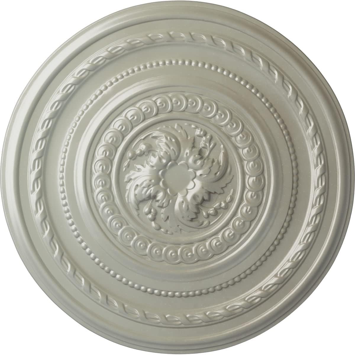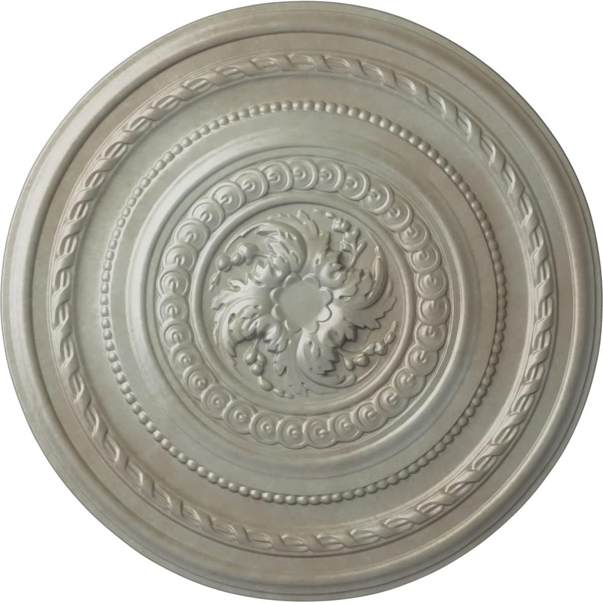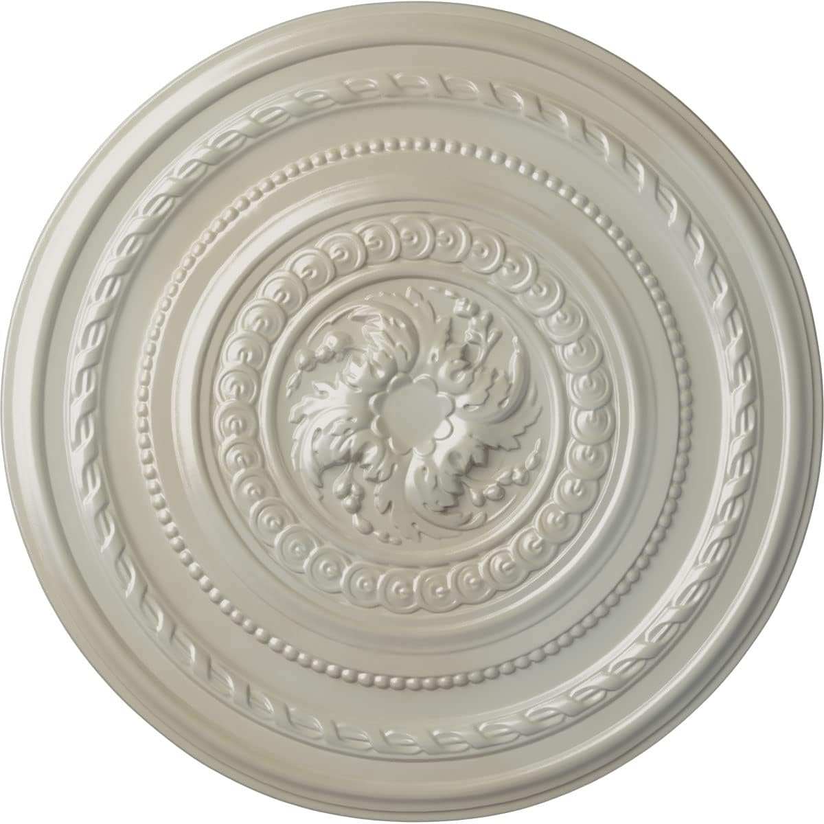 Our ceiling medallion collections are modeled after original historical patterns and designs. Our artisans then hand carve an original piece. Being hand carved each piece is richly detailed with deep relief, sharp lines, and a truly unique touch. That master piece is then used to create a mold master. Once the mold master is created we use our high density urethane foam to form each medallion. The finished look is a beautifully detailed, light weight, solid construction, focal piece. The resemblance to original plaster medallions is achieved only by using our high density urethane and not vacuum formed, "plastic" type medallions. Medallions can be cut using standard woodworking tools to add a hole for electrical or a ceiling fan canopy. Medallions are light weight for easy installation. They are fully primed and ready for your paint. If you have any questions feel free to ask. These are in stock and available for immediate shipment.