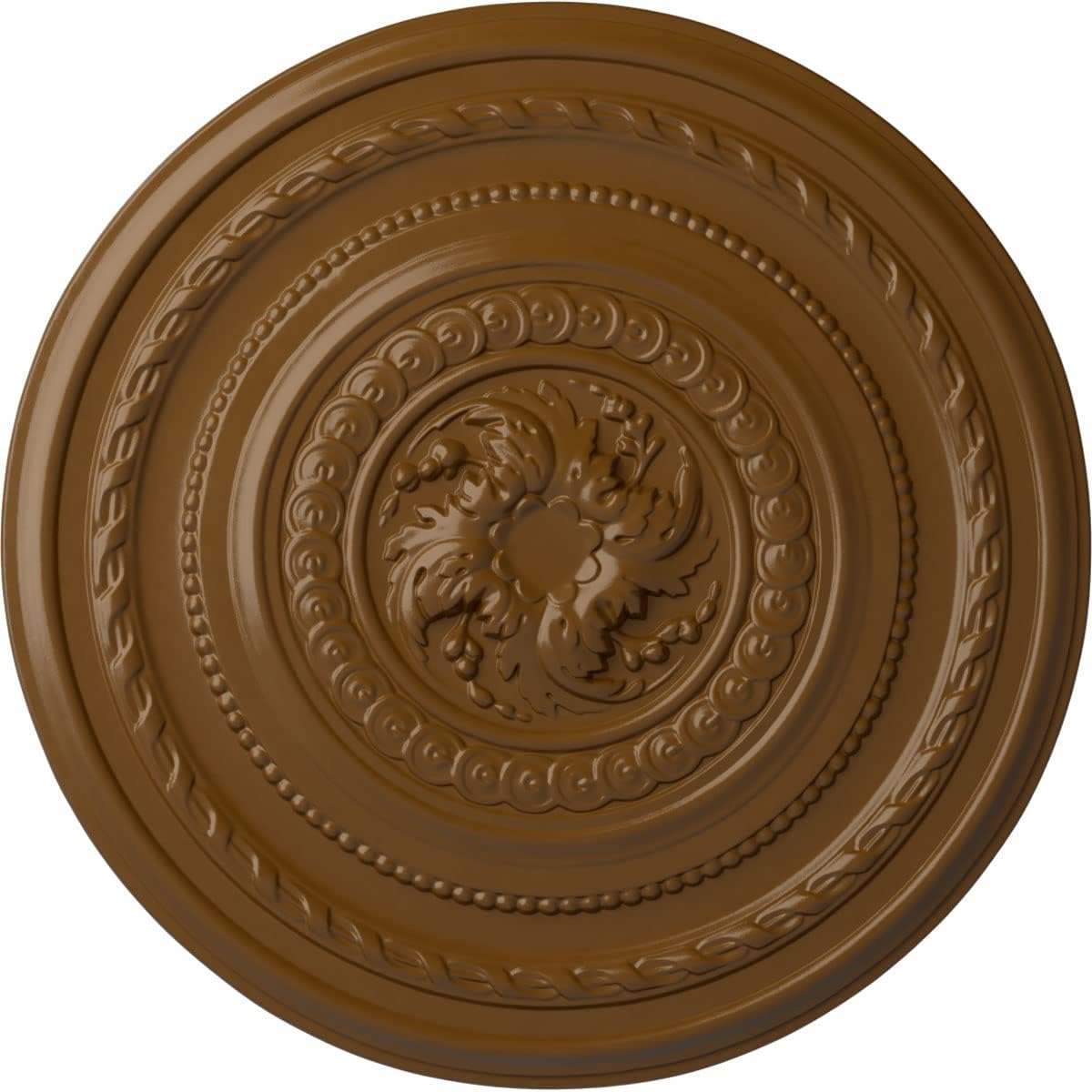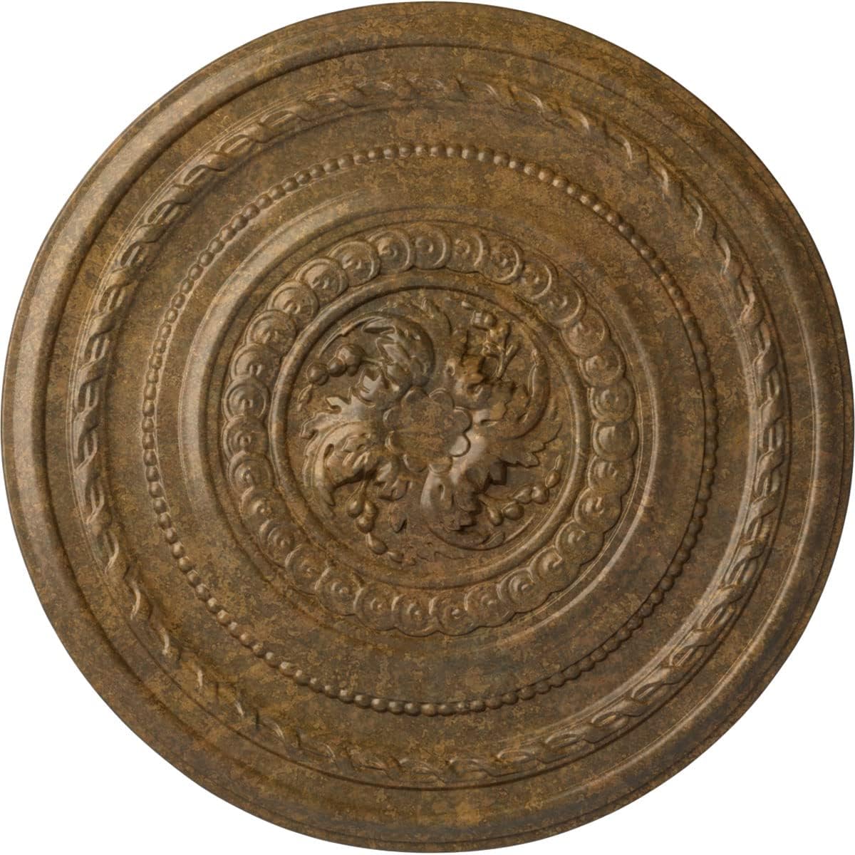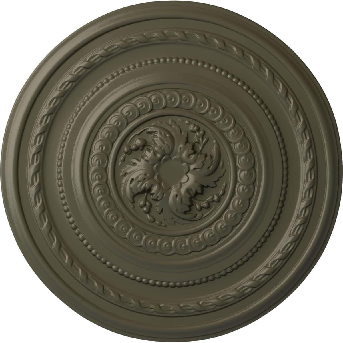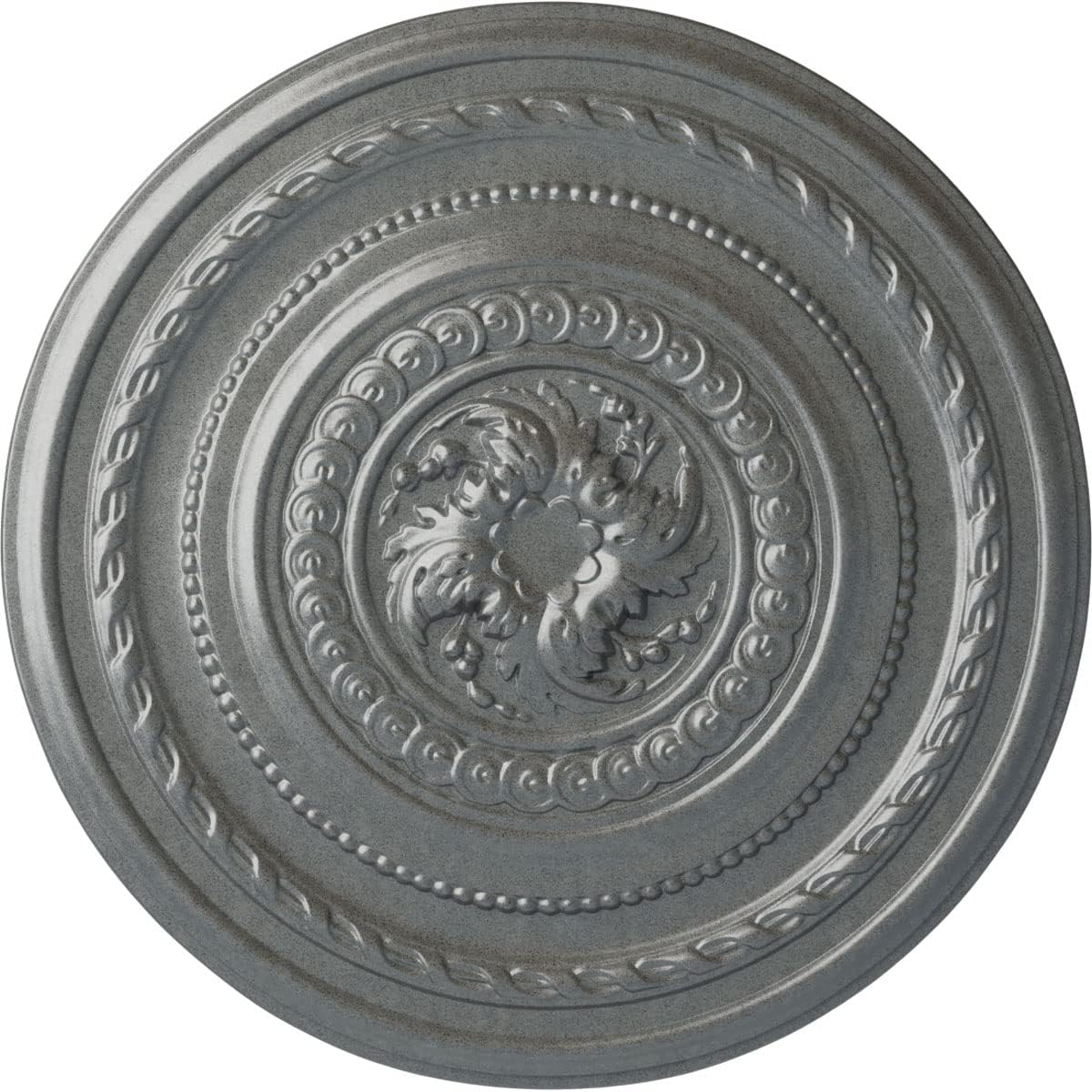 Our ceiling medallion collections are modeled after original historical patterns and designs. Our artisans then hand carve an original piece. Being hand carved each piece is richly detailed with deep relief, sharp lines, and a truly unique touch. That master piece is then used to create a mold master. Once the mold master is created we use our high density urethane foam to form each medallion. The finished look is a beautifully detailed, light weight, solid construction, focal piece. The resemblance to original plaster medallions is achieved only by using our high density urethane and not vacuum formed, "plastic" type medallions. Medallions can be cut using standard woodworking tools to add a hole for electrical or a ceiling fan canopy. Medallions are light weight for easy installation. They are fully primed and ready for your paint. If you have any questions feel free to ask. These are in stock and available for immediate shipment.