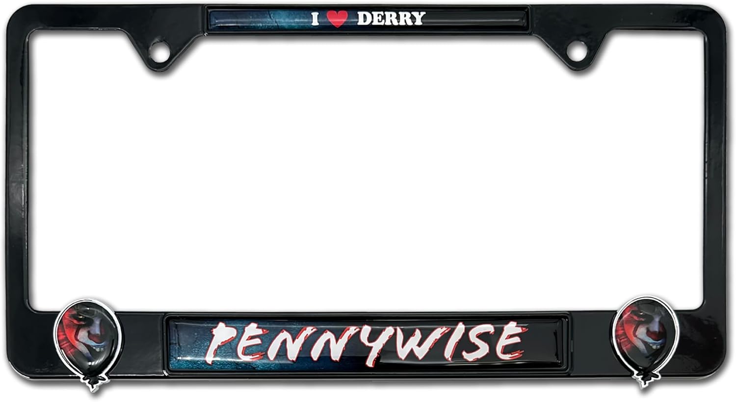 Elektroplate Officially Licensed - IT Movie Pennywise I Love Derry Black All-Metal Open Corners Horror License Plate Frame Tag Holder for Cars/SUVs/Trucks Weather-Proof Automotive Accessory