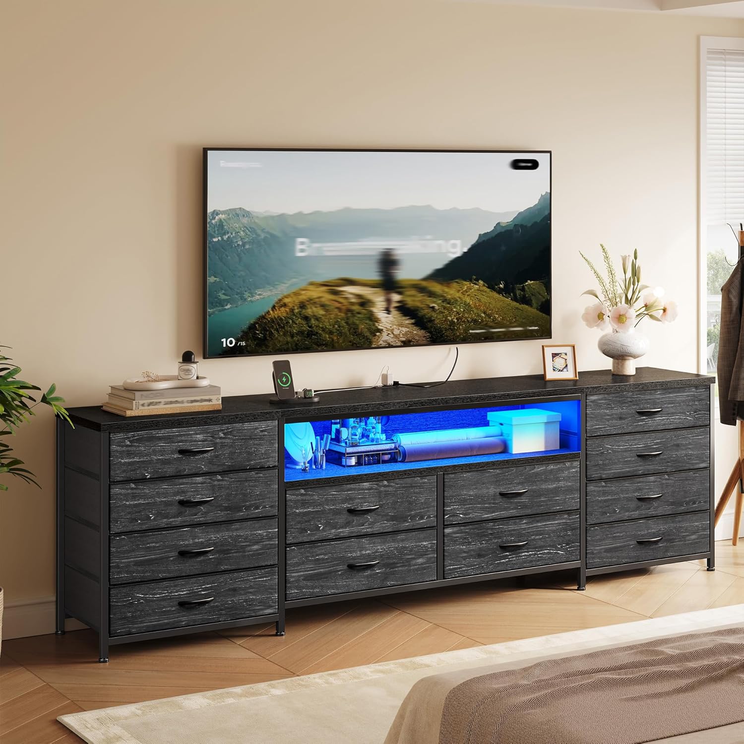 | Additional Features | TV Stand Dresser for Bedroom with 12 Drawers & LED Lights & Power Outlets for 75 Inch TV |