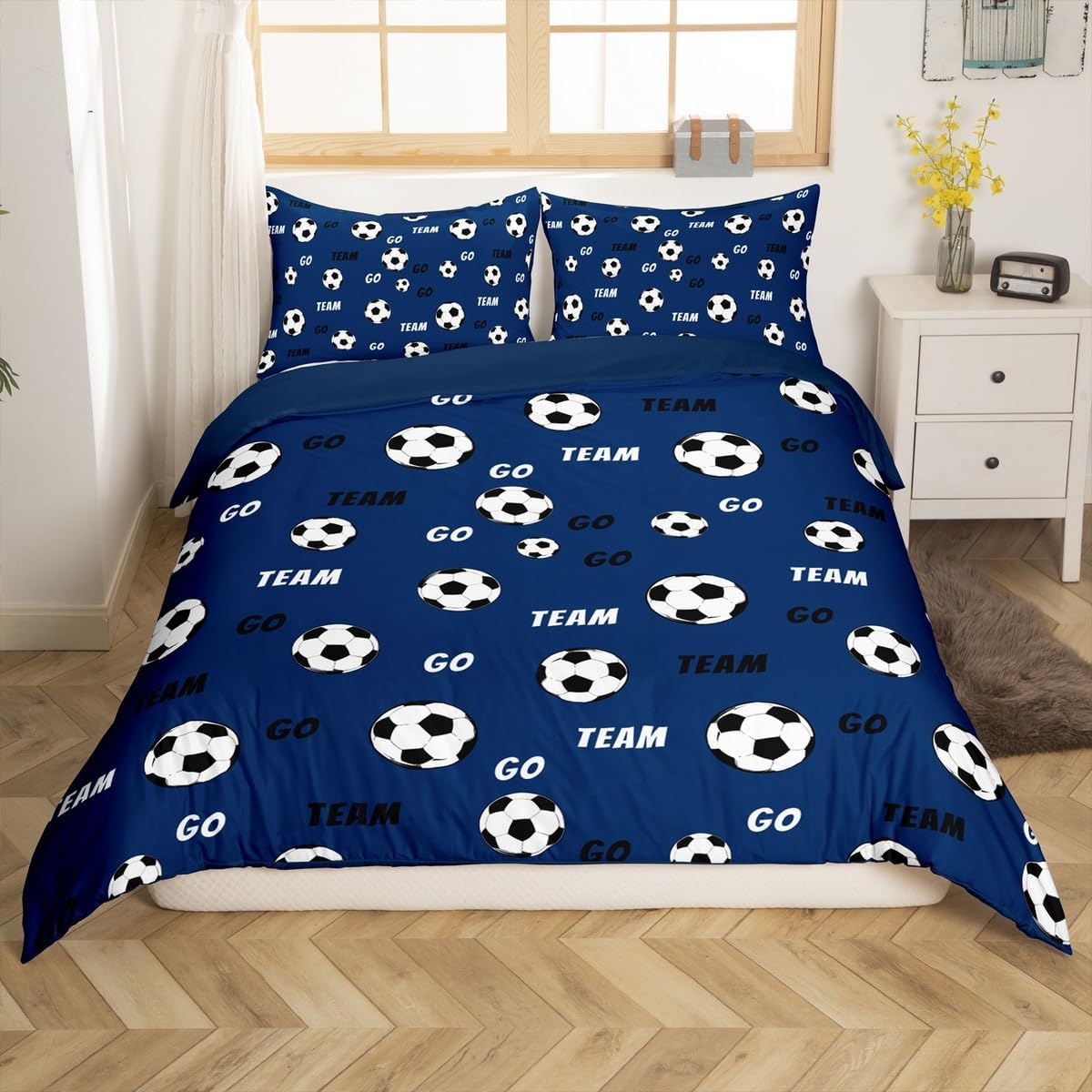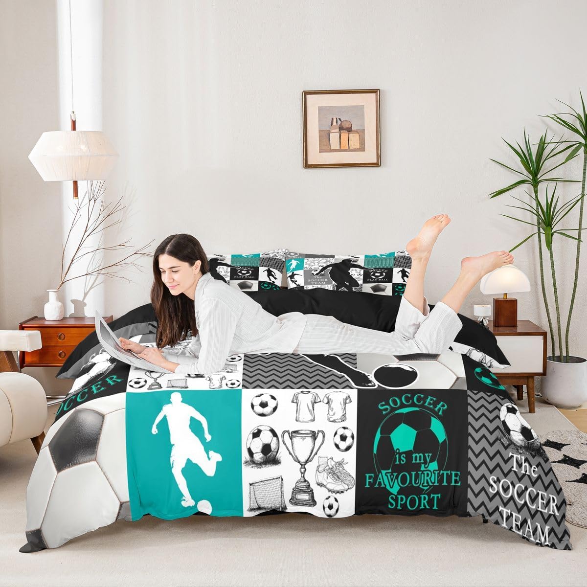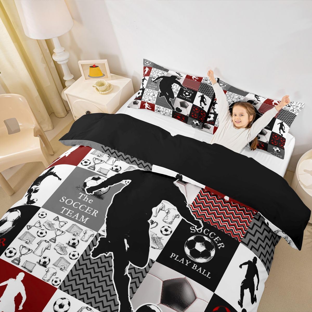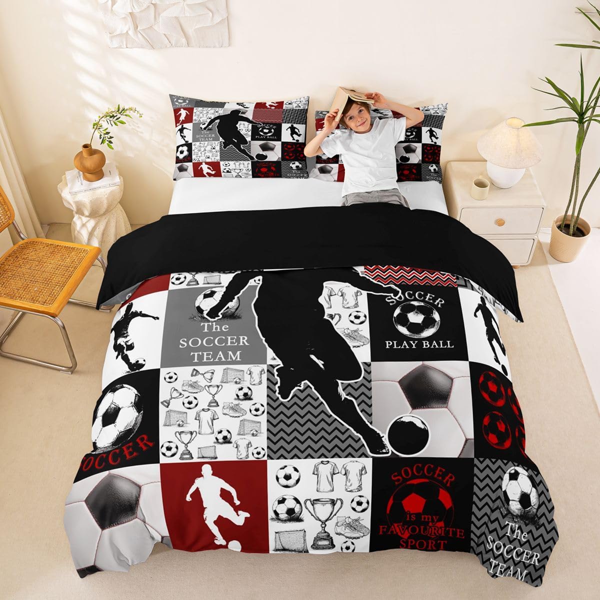 Feelyou Kids Soccer Duvet Cover Queen Size Football Bedding Set Boys Girls Soccer Ball Pattern Gray Comforter Cover Set Sports Theme Bedspread Cover(No Comforter