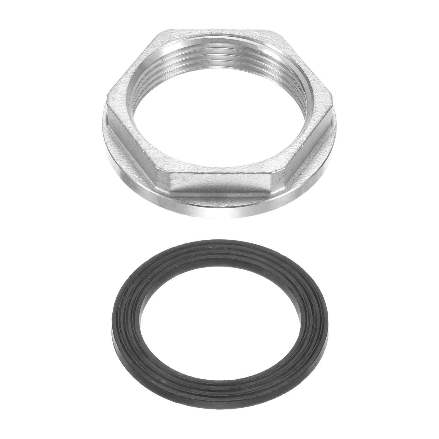 1. APPLICATION RANGE: This versatile lock nut is suitable for pipe securing in residential and commercial settings, industrial piping, and other water, gas, and oil pipe processing systems.2. SIMPLE OPERATION: Easy to use, it can be screwed onto the corresponding G-threaded male pipes or fittings. The hexagonal design allows for easy tightening and loosening with a wrench. Ensure proper alignment and thread engagement for optimal performance and sealing.3. DURABLE DESIGN: Crafted from brass, this hexagonal lock nut is meticulously crafted for high hardness, resistance to wear, corrosion, rust, and aging, ensuring long-term use. This lock nut is used to connect G-threaded pipes and hoses, locking the two threaded joints together for a secure, leak-proof connection. The included silicone gasket acts as a buffer to reduce vibration and maintain stability, preventing the nut from loosening.4. PACKAGE INCLUDE: 2 pcs Cast Pipe Fitting Hex Locknut, 2 pcs x Silicone Washer; Female Thread: G 1/2", Diameter: 19 mm / 0.75 inch ID; Thickness: 9 mm / 0.35 inch; Material: 304 Stainless Steel; Color: Silver5. NEED ATTENTION: Please check the size before choosing our product.
