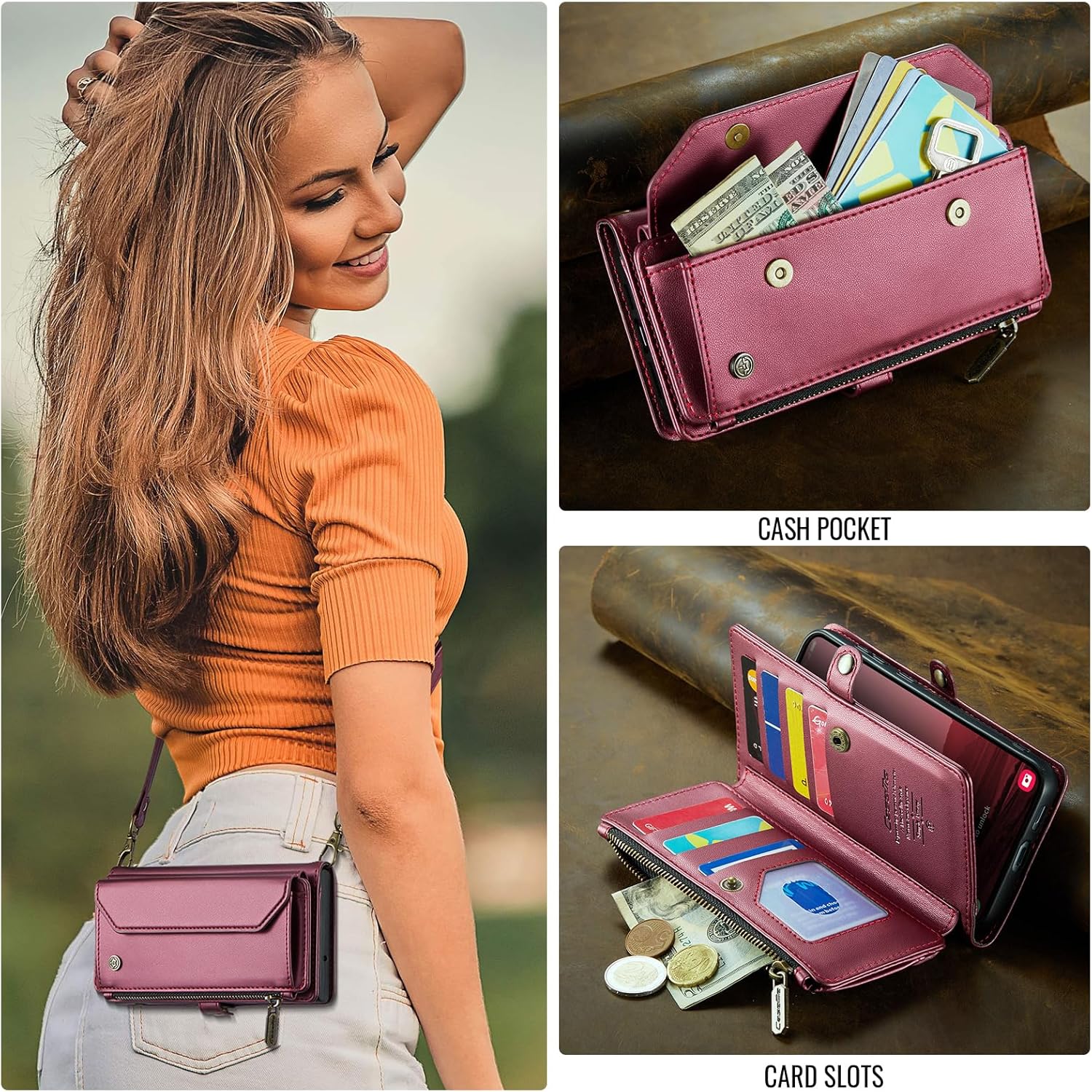 | Additional Features | Detachable Crossbody Strap and Wristlet, Multi functional wallet Case, Secure Magnetic Closure |