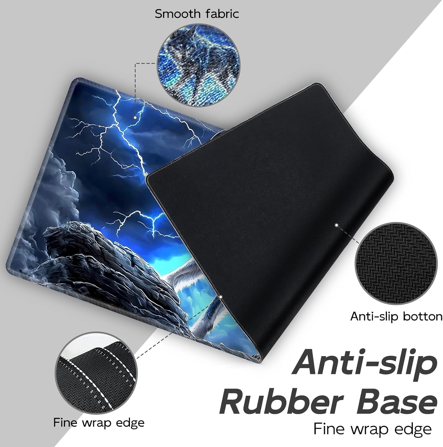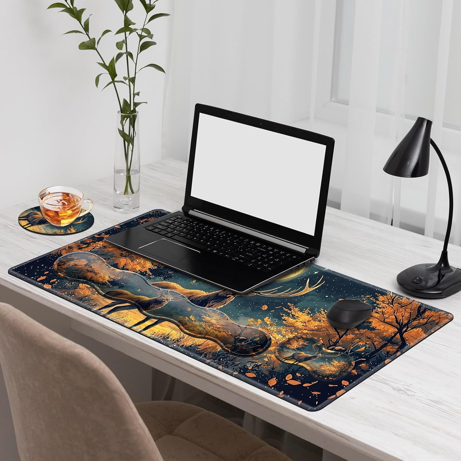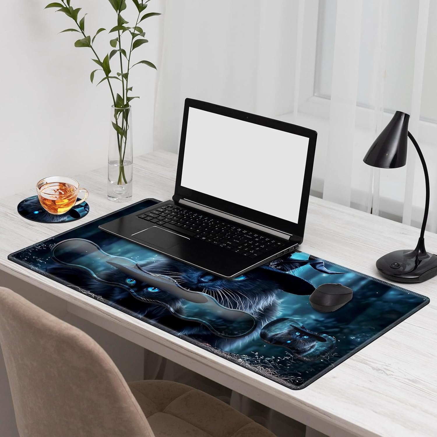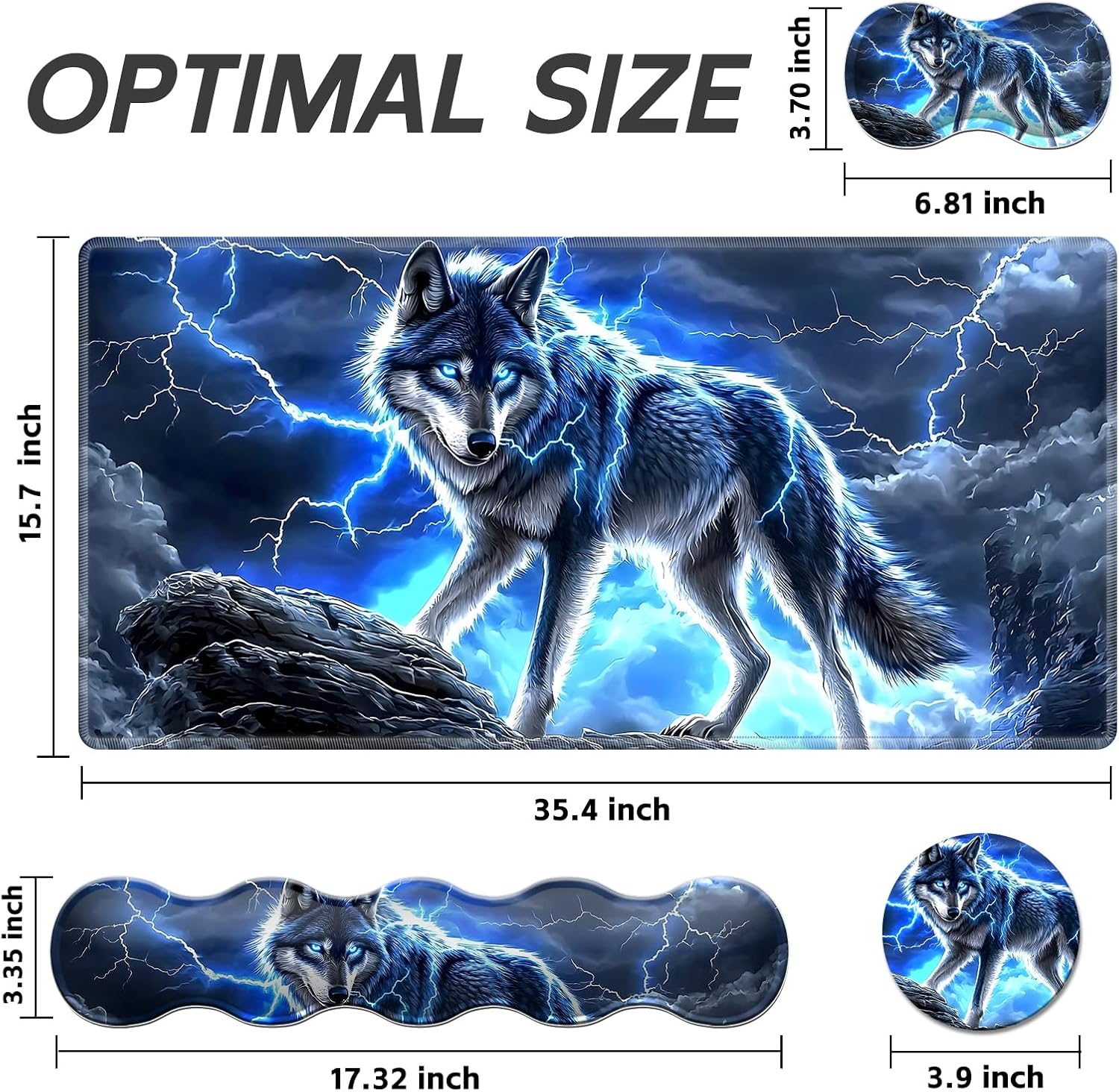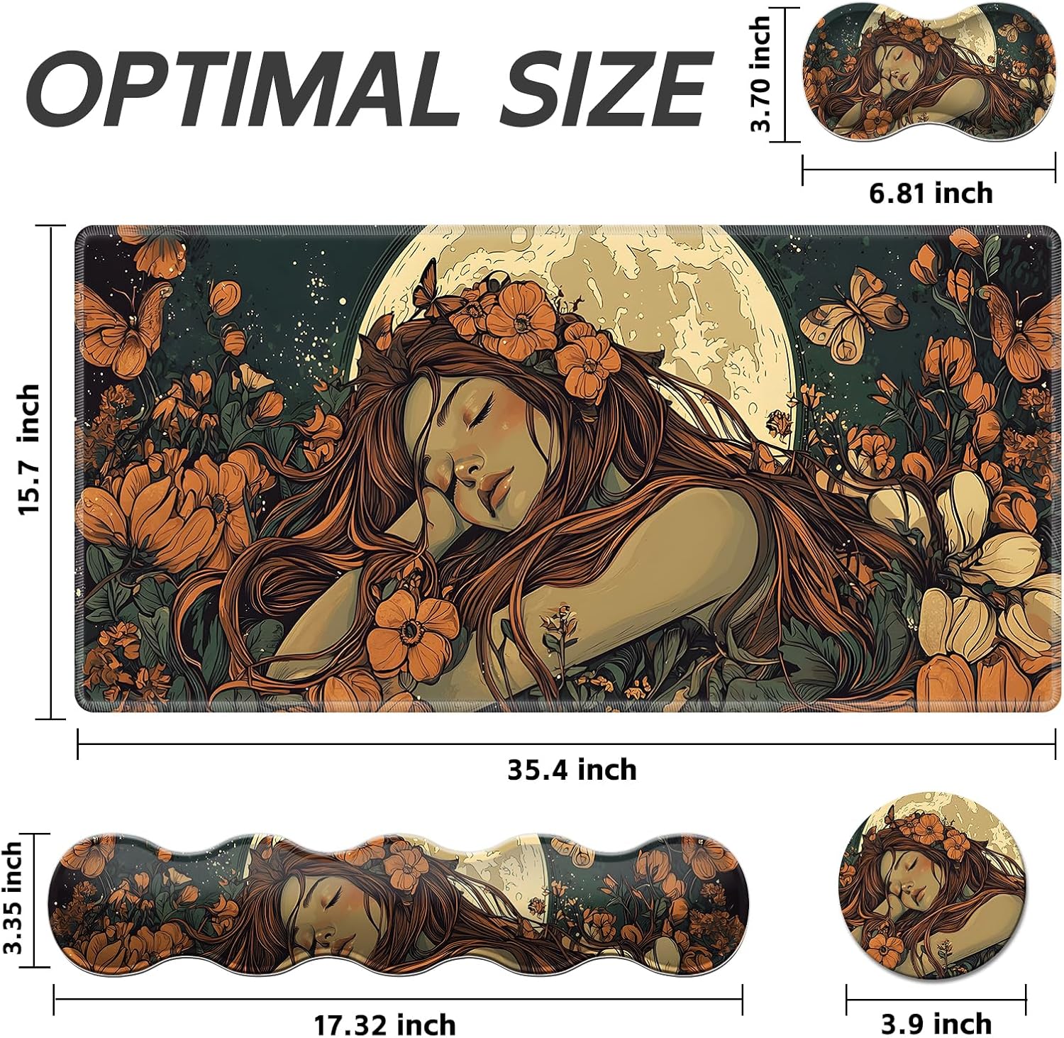• 4 in 1 Mouse Pad Set: Our large mouse pad and wrist rest set includes 35.4x15.7x1.2inch mouse pad , 17.32x3.35inch keyboard wrist rest, 6.81x3.7inch mouse wrist rest, 3.9x3.9inch cup coaster, Meet various needs, Effectively avoid damage and other wrist problems