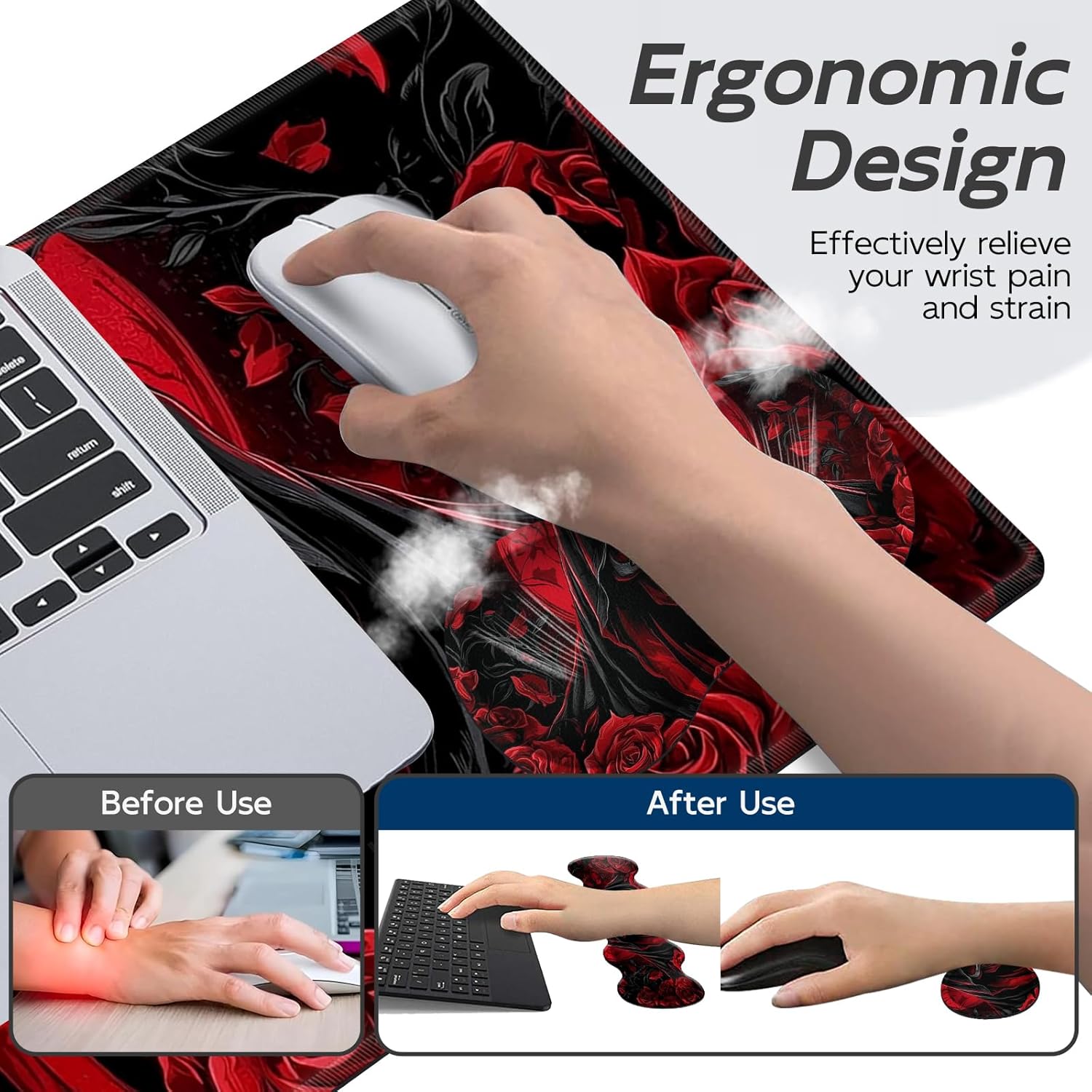 • Ergonomic Design: Ergonomic mouse pad with wrist rest fits the wrist perfectly, And The keyboard wrist and Wrist pad is made of ergonomic memory Foam Material, provides comfortable and elastic support to the wrist