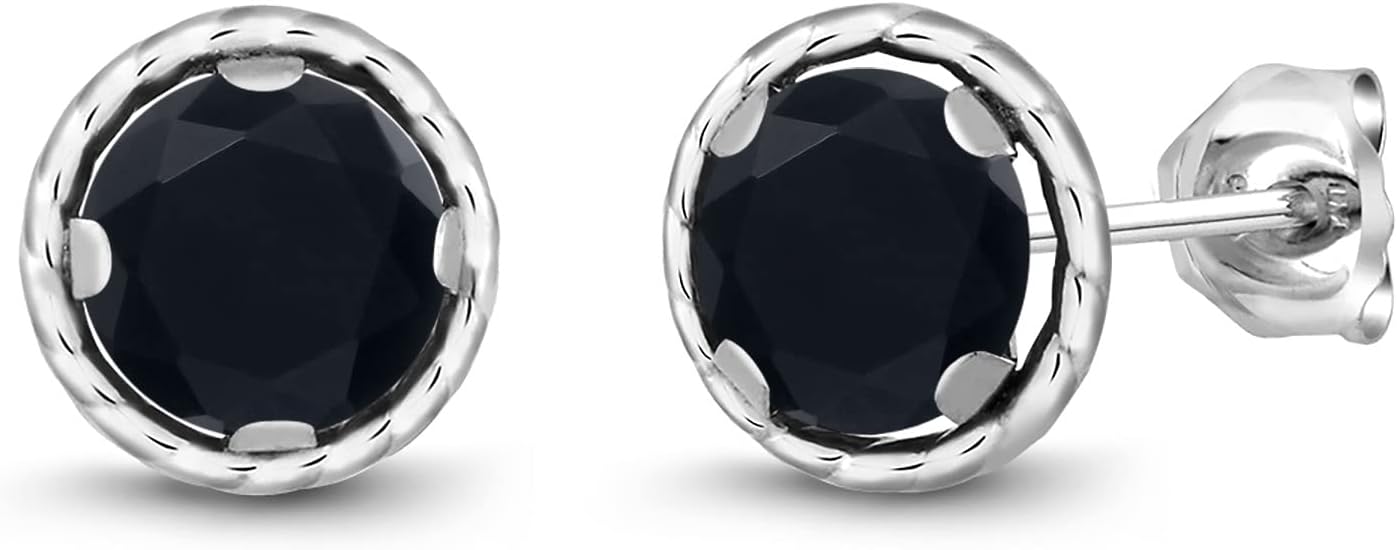 Gem Stone King Round 6MM Gemstone Birthstone Stud Earrings For Women Men | 925 Sterling Silver | Fine Jewelry Gifts for Her Mom Women Wife