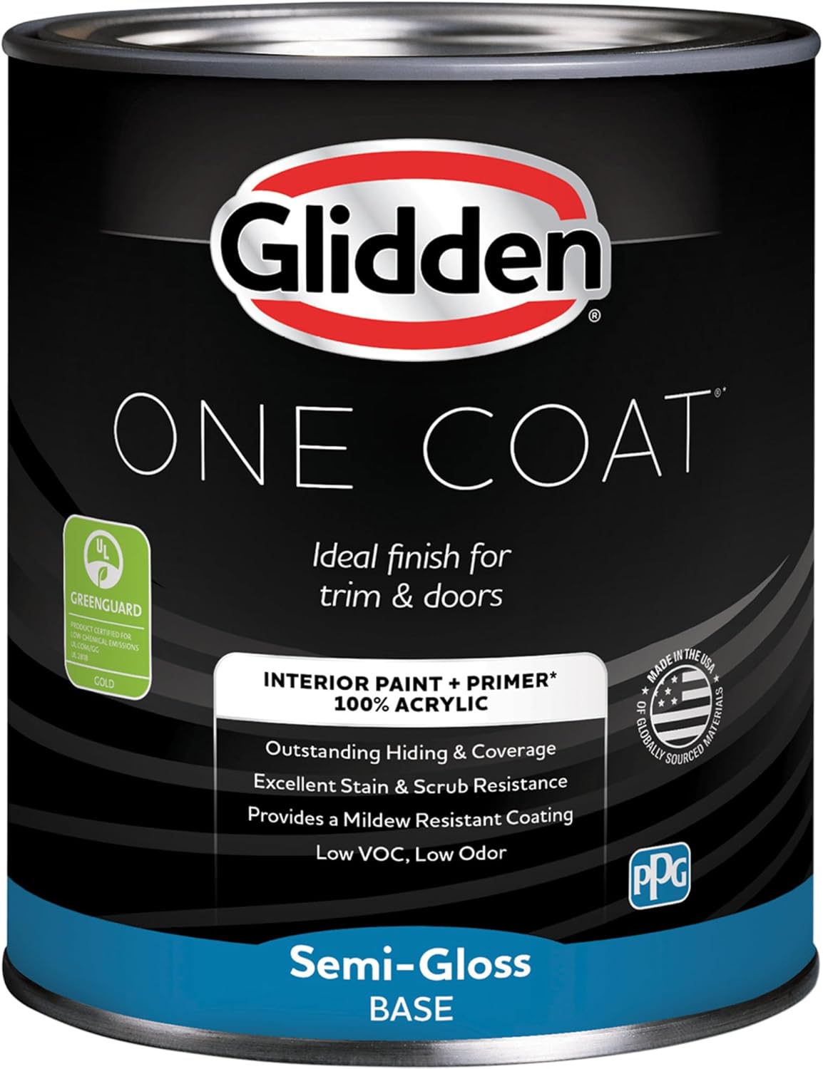 Glidden One Coat interior acrylic paint is a super-premium paint with one coat coverage* to save you time and money. It has exceptional hide and stain block which means you need fewer coats to hide your common stains and make your walls beautiful. It is a paint with so it can stand up to frequent cleanings. Featuring a hand selected palette of over 300 of our most popular paint colors, one easy coat is all you need!