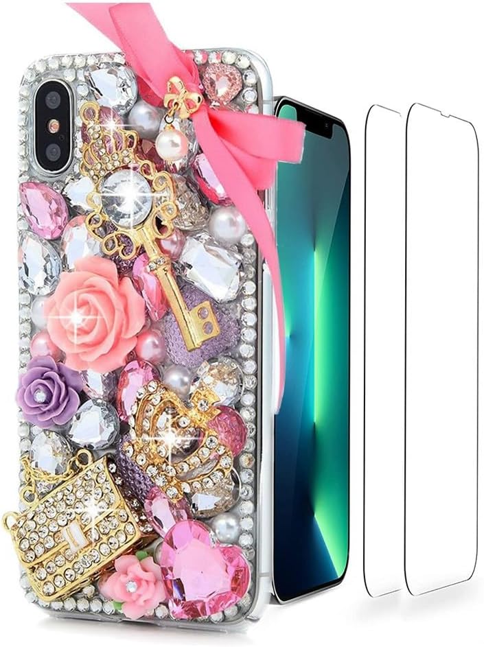 Shock-proof & Against Scratches: The case is made of high-quality silicone material, and the high-quality rhinestones and accessories are carefully assembled by the craftsmen. They are very beautiful and not easy to drop, offering full protection for your cellphone against scratches, drops, and bumps.