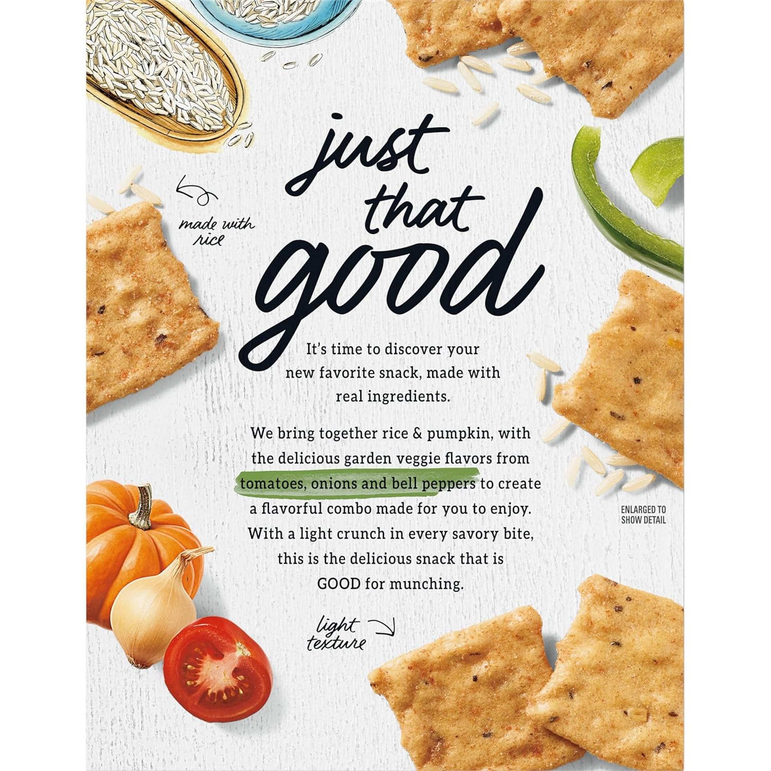 Enjoy a wholesome snack anytime, anywhere with Good Thins Garden Veggie Rice Gluten Free Crackers. Crafted with rice, these snack crackers are made with delicious goodness baked in every bite, and they're flavored with garden vegetables flavors like tomatoes, onions and bell peppers for a simply delicious snack. These square rice crackers are certified Gluten-Free by GFCO and Non-GMO Project Verified, and contain no artificial colors, artificial flavors, cholesterol or high fructose corn syrup making them delicious gluten free snacks for adults. Enjoy these light, crispy thin crackers by themselves, or pair them with cheese and dip for an easy party snack. With 6 boxes of bulk crackers, you'll have plenty on hand for every occasion and make excellent travel snacks and lunch snacks for adults and kids.