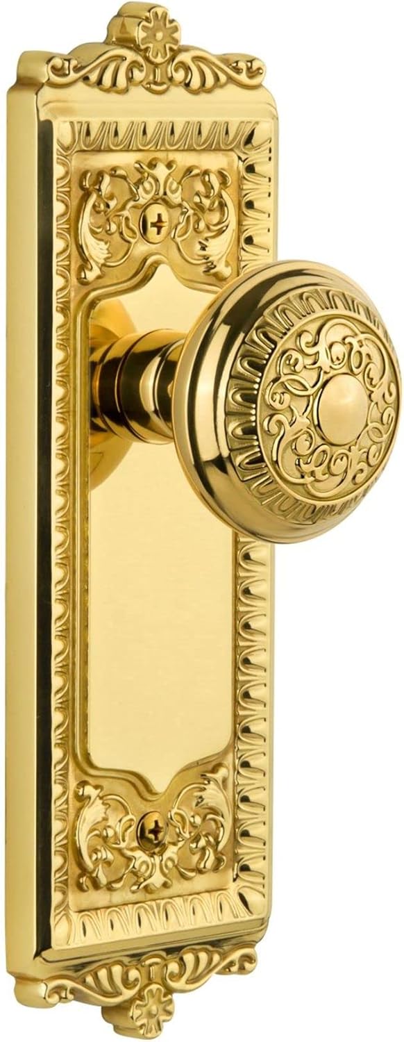 Product Description This Windsor Plate in polished brass came into its current form from the neo-classical architecture made famous by Thomas Jefferson's Monticello and the royal Windsor estates in England. Pair this with our extravagantly detailed Windsor Knob for a royal look unparalleled. All Grandeur products are created from solid (not plated) forged brass. From the Manufacturer This Windsor Plate in polished brass came into its current form from the neo-classical architecture made famous by Thomas Jefferson's Monticello and the royal Windsor estates in England. Pair this with our extravagantly detailed Windsor Knob for a royal look unparalleled. All Grandeur products are created from solid (not plated) forged brass.