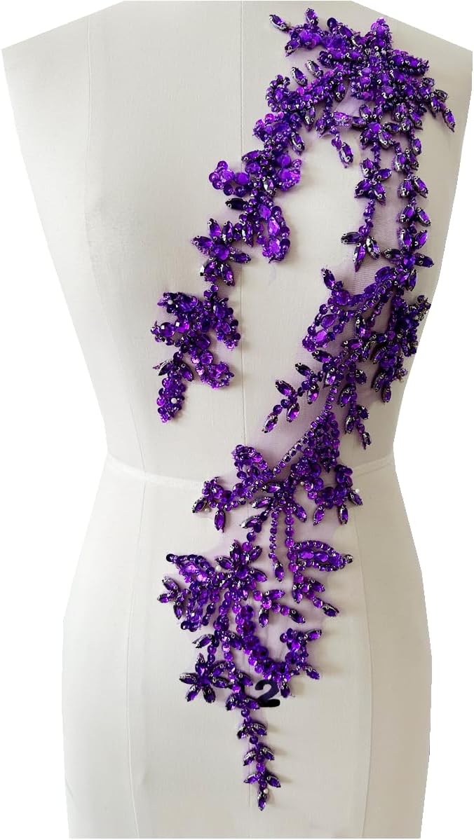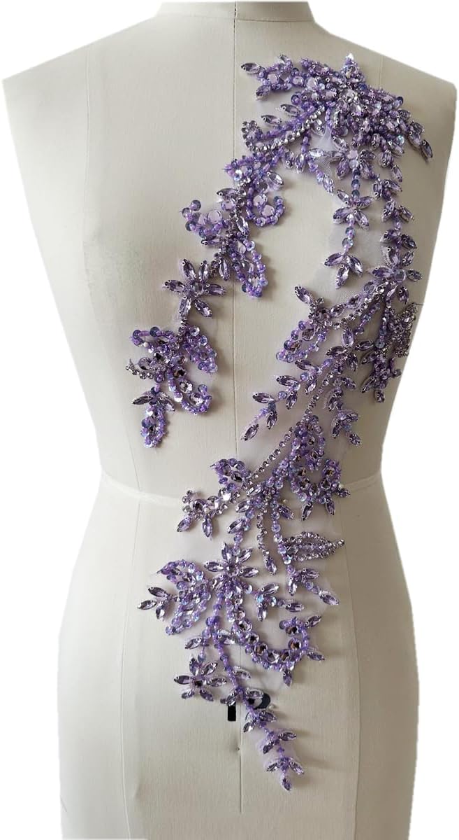 Size of model in picture:size 12The shining stone is sewn on the lace, there is no glue on the back, it cannot be ironed on the clothes, please sew it on the clothes with a needle and thread