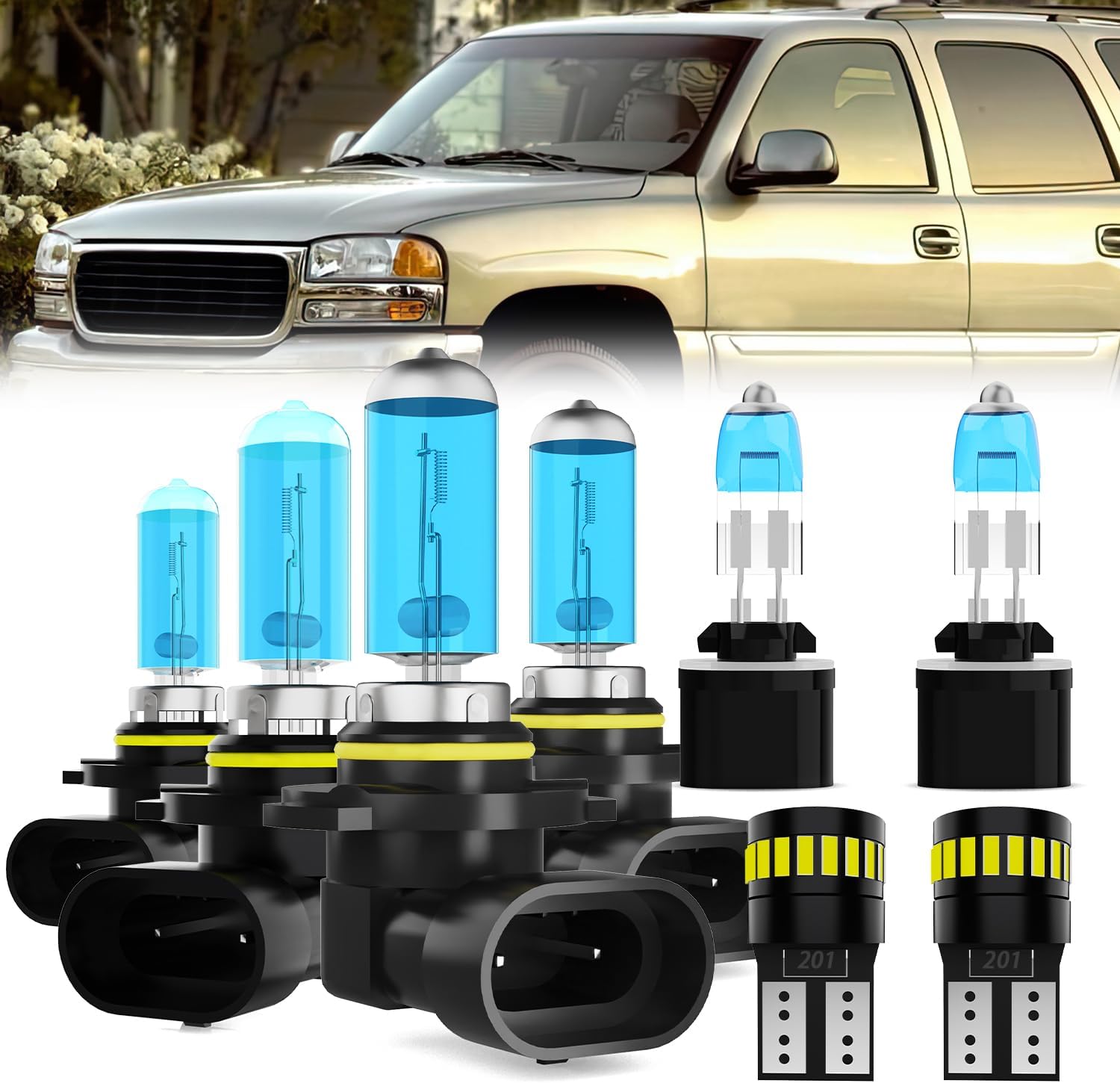 | Included Components | 2 PCS 9005 High Beam Halogen Bulbs; 2 PCS 9006 Low Beam Halogen Bulbs;2 PCS 880 Fog Lights Halogen Bulbs; 2 PCS License Plate Lights |