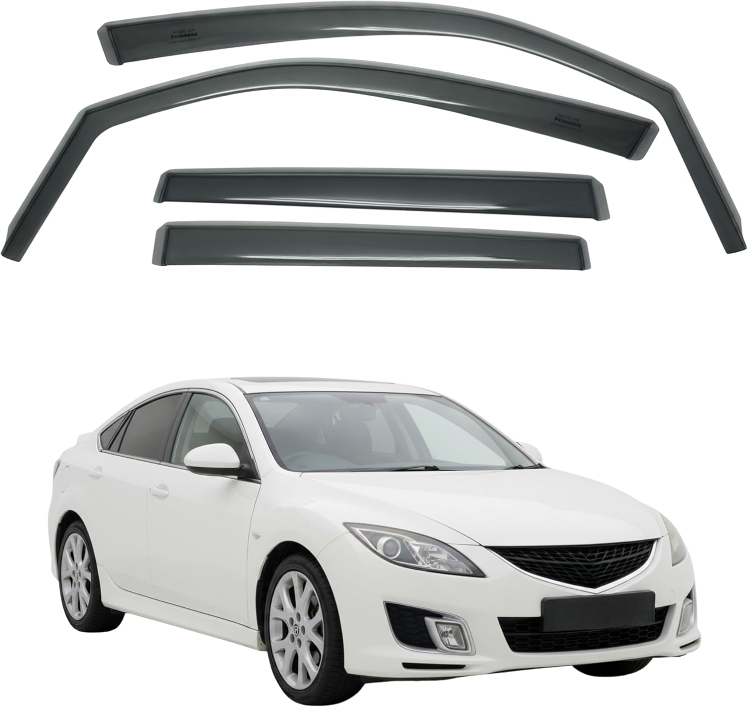 in-Channel Car Window Rain Guard Compatible with Mazda 6 4D (2002-2007) 4pcs, Taiwan Made Precise & Transparent Car Wind Deflectors No Water Leakage Visors