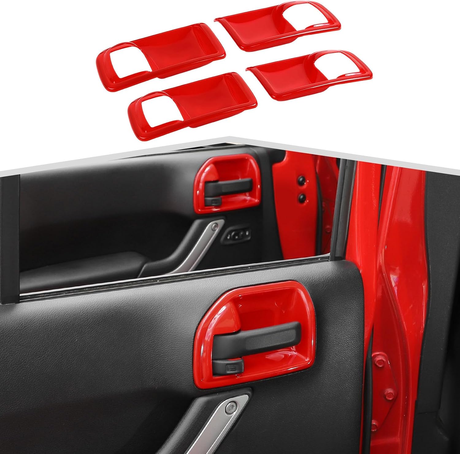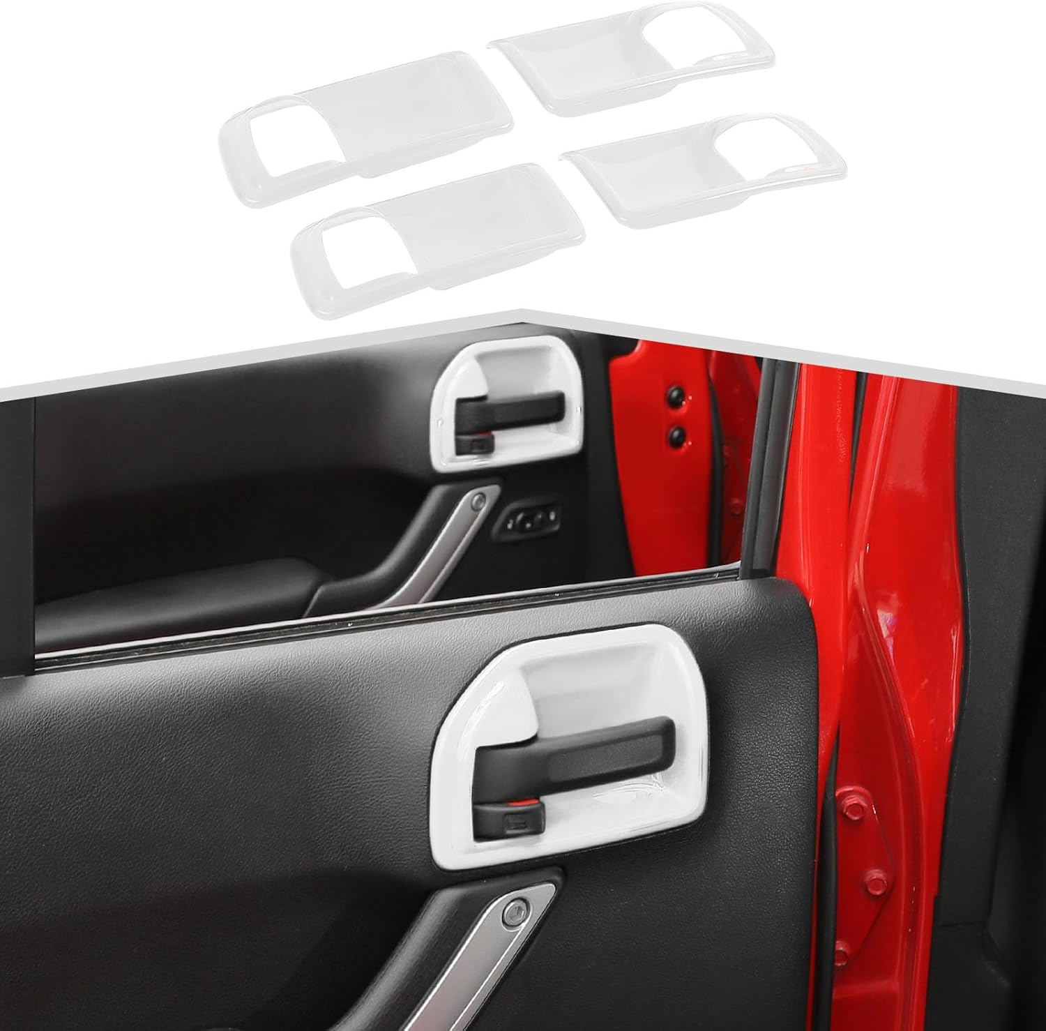 Fitment: - Inner Door Handle Bowl Cover Compatible with Jeep Wrangler JK JKU 2011 2012 2013 2014 2015 2016 2017 Features: - Color: Purple Carbon Fiber Grain Blue Red Black Light blue Red Carbon Fiber White Orange Pink Green Yellow - Condition: 100% Brand New - Material: Amayum inner bowl handle cover accessory is made of high quality ABS - The door inside handle bowl overlay can provide a high class and fashion decor style for your car. - Change the monotonous interior to add cool color to your car. - The door handle bowl inner overlay can cover existing scratches and prevent your car from scratch and abrasion. Installation Guide: Step1: Please clean the installation place and keep it dry and no dust on. Step2:Tear off the double-sided tape on the back of the inner door handle bowl cover and paste it to the corresponding position. If you have any questions about installation, please feel free to contact us. Package Include: - Amayum Inner Door Handle Bowl Cover*4