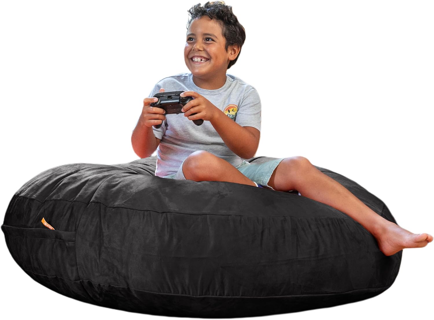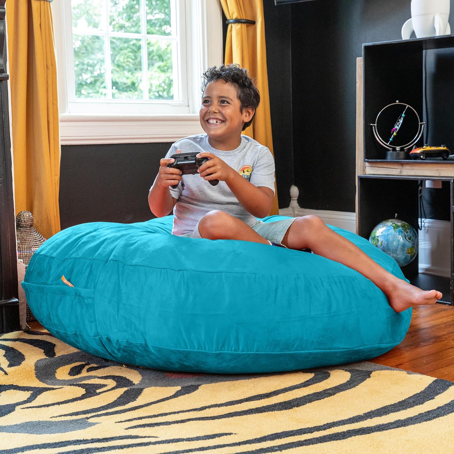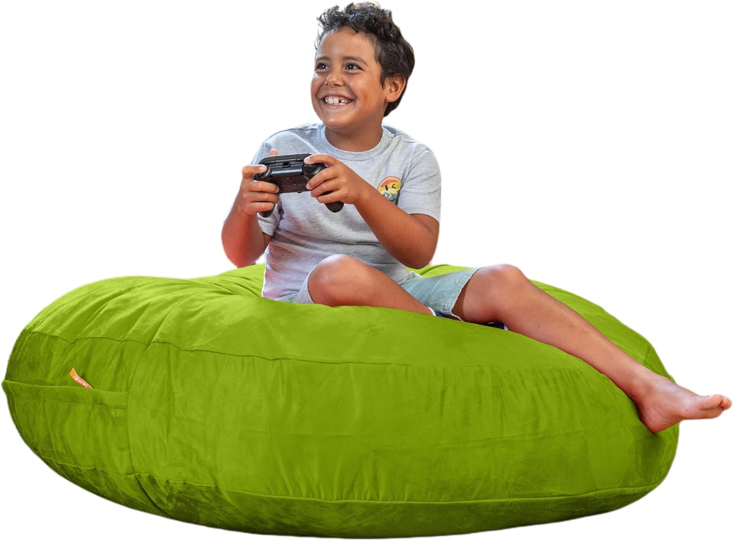 Whether they're using it to cuddle with their stuffed animals or make a crash landing, the Jaxx Cocoon Jr. Bean Bag makes a great addition to any kids room. This round bag is made from cushiony foam and a lush microsuede cover that zips off for easy machine-washing, meaning it's a great place to watch cartoons and eat snacks. Available in your choice of color so you can pick the color that fits your child's personality. About Jaxx Focused on both the atmosphere of your home as well as the state of the environment, Jaxx creates functional furniture while trying to maintain a minimal environmental footprint. Since 2006, Jaxx has been working non-stop to create their proprietary blend of up-cycled virgin scrap materials and byproducts now known as ECOFOAM. This alternative to conventional foams and fillers led to a technological innovation that allows for the compression of ECOFOAM to a third of its original size, making it easier and more efficient to ship and store. This has resulted in an even smaller carbon footprint. Today, the Company continues to test the limits of traditional processes to bring you stylish, smart and functional furniture while taking responsibility for the impact on the environment. Jaxx encourages you to follow their lead, be present in your space and live life to the fullest. Round bean bag chair for children. Microsuede cover and furniture-grade polyurethane foam. Available in a wide variety of color options. Removable zippered cover for machine-washing. Dimensions: 48L x 48W x 12H inch.