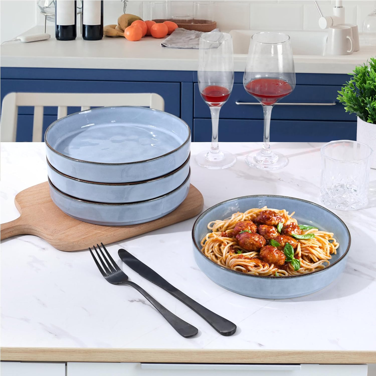 Pasta serving bowl set is made of natural stoneware, safe for different cuisine ensuring your family and your health, ideal for salads, stews, and soups. Nice wave appearance and natural color fits most of your dinnerware and tableware, really an essential choice for your home decoration! Roaster pan with V-shaped rack is perfect for big turkey, ham, rib, take out the rack and the roasting pan can used to bake brownie, Lasagna, cake, seafood, potato, veggies, flat baking rack can be used for daily baking /cooling, great gift for housewarming, Thanksgiving, Christmas.