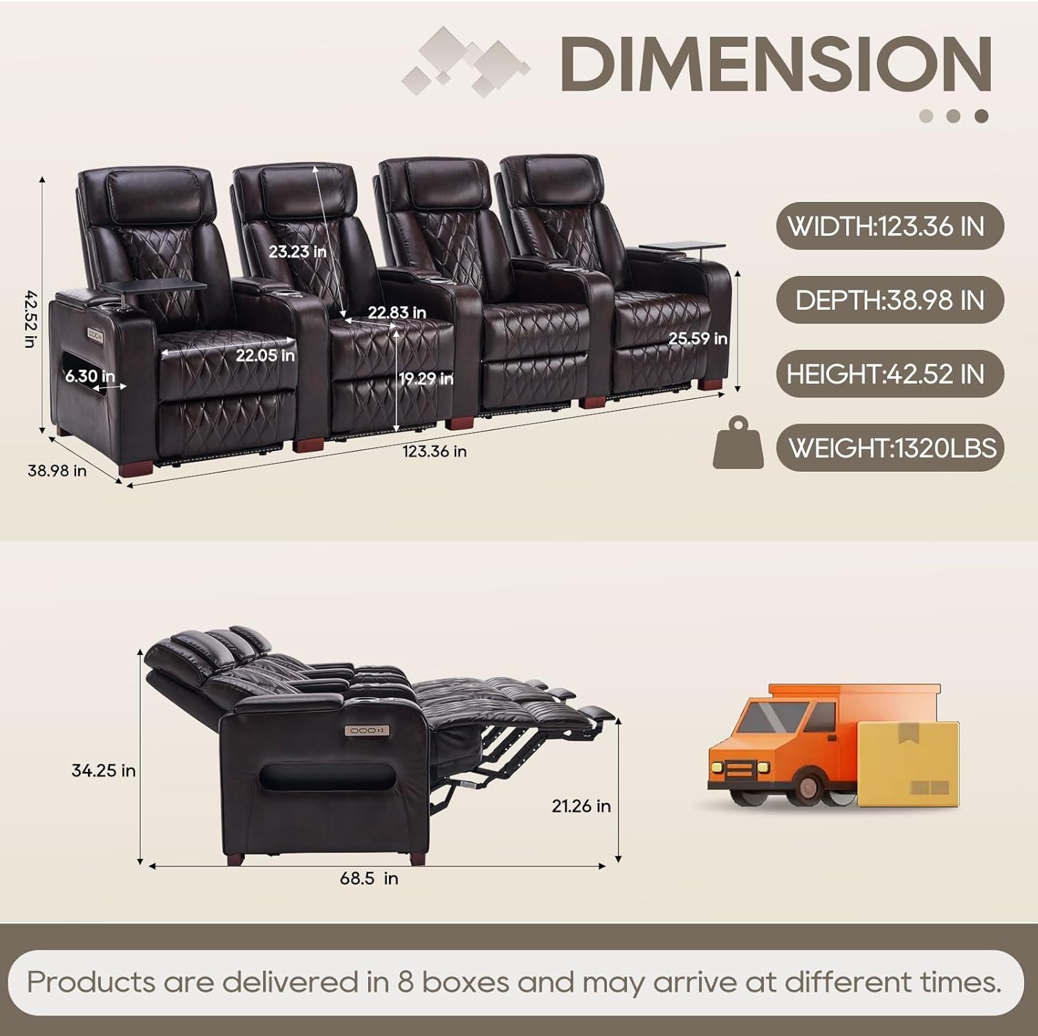 | Item Dimensions D x W x H | 38.98"D x 123.36"W x 42.52"H |