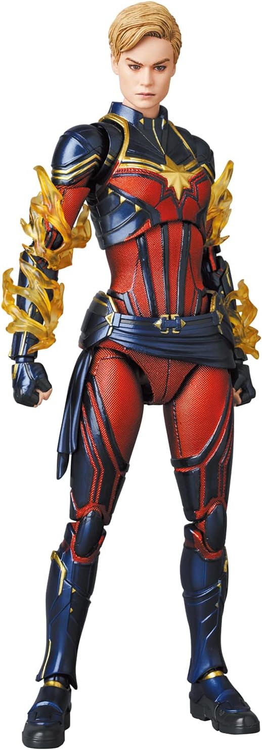 It combines the best form and outstanding movable area. The strongest action figure. Captainin Marvel from the movie "Avengers: Endgame" has been reproduced in 3D. Completely reproduces the shape and pattern of the suit. Comes with 2 types of heads. Comes with various effect parts. Comes with various wrist parts to recreate a variety of actions. Comes with an adjustable figure stand. Total Height: Approx. 5.9 inches (150 mm). Head Sculptor: Kyoichi Shimazaki. Original Sculptor: PERFECT-STUDIO. Samples are taken during supervision. It may differ from the product being released in the (C) 2021 Marvel