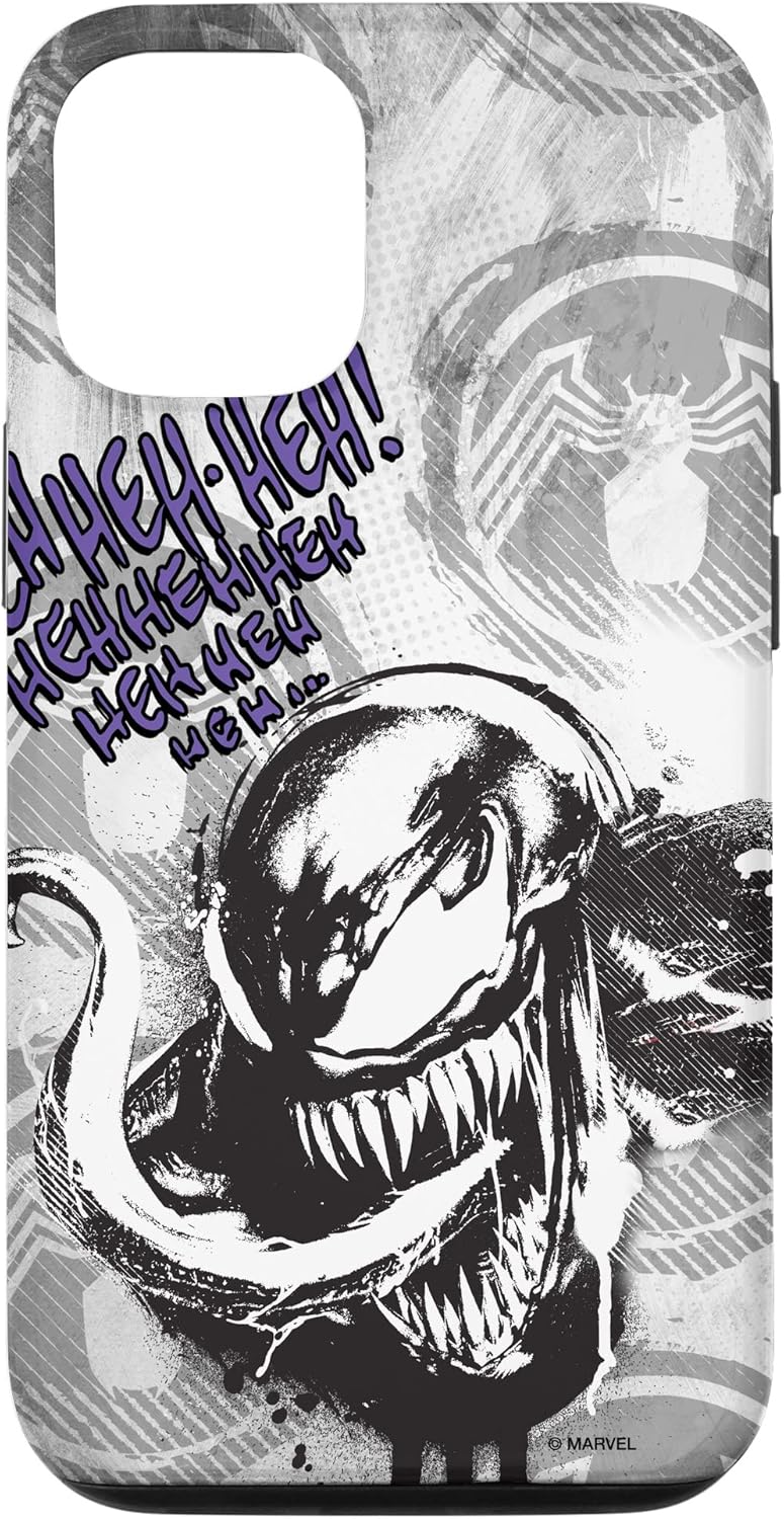 Marvel Venom Character design. Spider-Man's dangerous adversary shows off his monstrous laugh and sinister style on this scary Venom phone case. Featuring frighteningly awesome artwork of Eddie Brock fused with the alien symbiote and an eerie "Heh Heh Heh!" this Marvel phone case protects your phone in the most villainous way. This Marvel phone cover is available for the following iPhone and Samsung models: iPhone SE (2020), iPhone 7, iPhone 8, iPhone 11, iPhone 11 Pro, iPhone 11 Pro Max, iPhone X/XS, iPhone XS Max, iPhone XR, iPhone 7/8, iPhone 7 Plus/8 Plus, Galaxy S10, Galaxy S10+, Galaxy S10e, Galaxy S9, Galaxy S9+, Galaxy S8, Galaxy S8+.