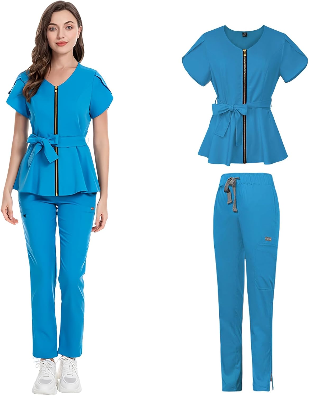 ALIALAVESTA Medical Scrubs for Wome,Medical Uniform Scrub Top & Pants with Zipper Drawstring Pants,Easy Care Uniforms