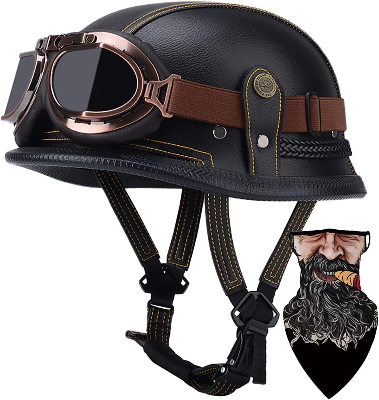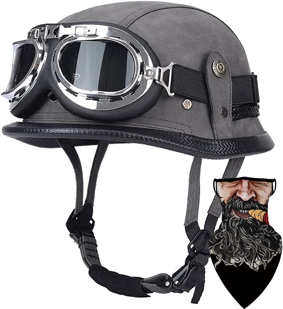 Motorcycle half face helmet are ideal for motorcyclists looking for a more comfortable and stylish ride with its technological design, lightweight half-face mask and cool womens motorcycle half helmet wearing comfort. Do you wanna have a cool helmet? Search "helmet + SWSAL" to choose more helmets! Helmet Features: ▪ DOT/ECE Safety Standard ▪ UV protective finished ▪ M/L/XXL/XXXL size for adult ▪ Light weight durable composite shell ▪ Very comfortable interior ▪ Adjustable Quick Release Buckle ▪ Perfect for cruiser, touring and scooter ▪ Comes with a new riding mask Goggles Features: ▪ Soft padded Chrome Frame with adjustable headband ▪ Split design, light weight ▪ Optical quality plastic lenses are scratch resistant. Name: half face helmet Material: ABS Weight: 650g Half Helmet Size Chart M=55-56cm/21.6 - 22 Inches; L=57-60cm/22.4 - 23.6 Inches; XXL=61-62cm/24 - 24.4 Inches; XXXL=63-65cm/24.8-25.5 Inches; Package content: motorcycle half face helmet * 1 Random color face towel * 1 After-sales service: We promise you 100% satisfactory service. If you have any questions about dot approved motorcycle helmets, please contact us! We will reply you in time within 12 hours! Looking forward to your purchase!