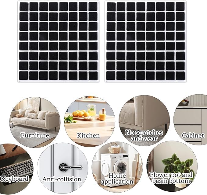 Customizable Felt Pads for Complete Floor ProtectionThese self-adhesive square felt pads come in a convenient sheet format with a grid design, allowing you to cut the pads according to your needs. They provide excellent protection against scratches, noise, and damage caused by furniture movement.Key FeaturesStrong adhesive backing for secure attachmentPrevents scratches and marks on floorsCuttable grid design for custom sizingReduces noise and frictionDurable felt material for long-lasting useWide ApplicationSuitable for chairs, tables, sofas, cabinets, appliances, and decorative items. Works on hardwood, tile, laminate, marble, and vinyl flooring.