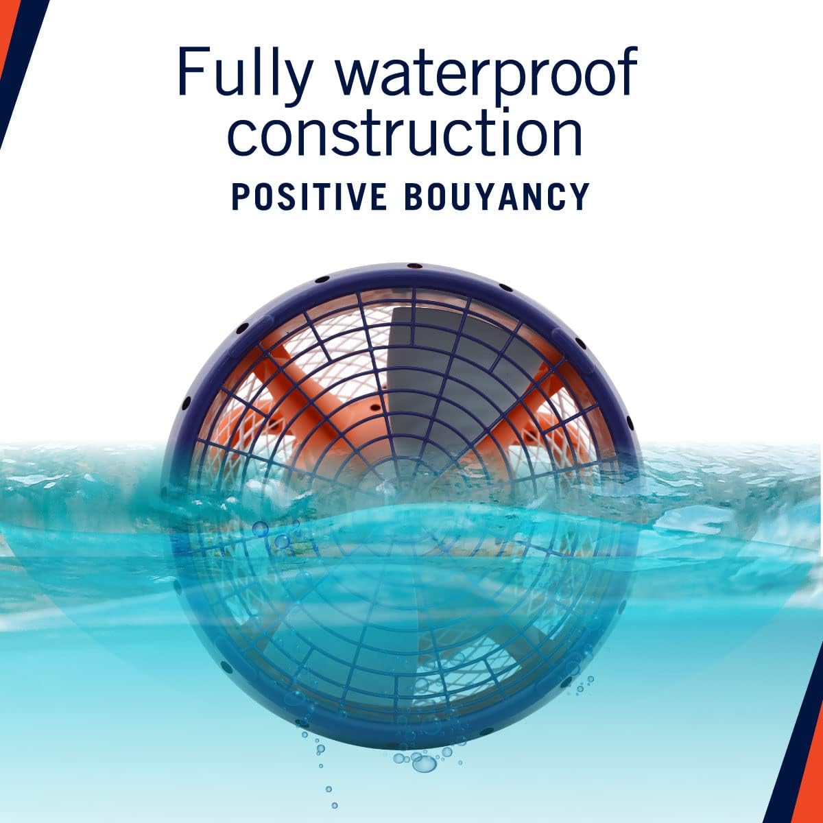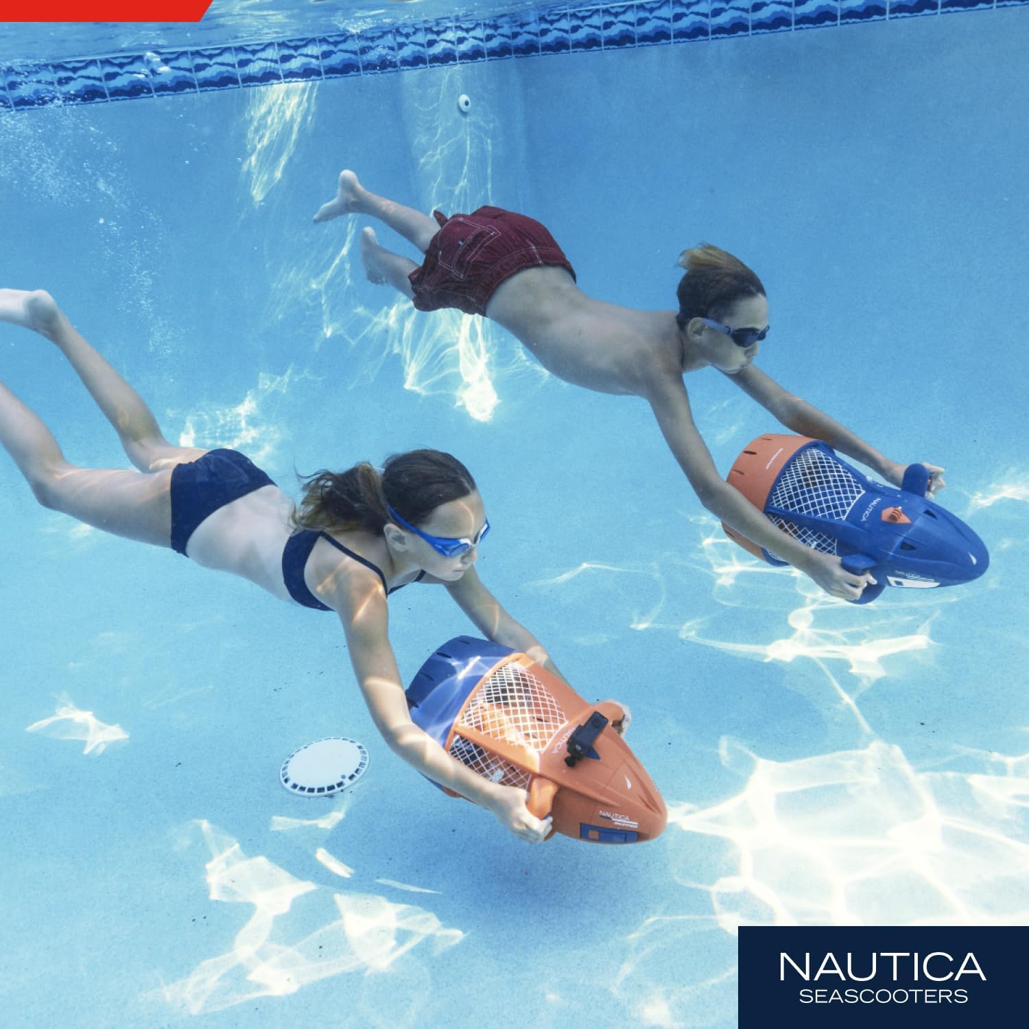 Introducing the Nautica Navigator Underwater Seascooter – perfect for young divers and snorkelers. The Nautica Navigator Seascooter offers easy navigation at 2.5 mph and depths of 30 feet. Enjoy 60 minutes of playtime with a rechargeable marine battery and safety features like a protective grille and automatic shut-off. Positive buoyancy ensures easy retrieval, and an action camera mount captures your underwater adventures (camera sold separately). Note: Max speed and range may vary. Dive into excitement with the Nautica Navigator – where reliability meets fun!