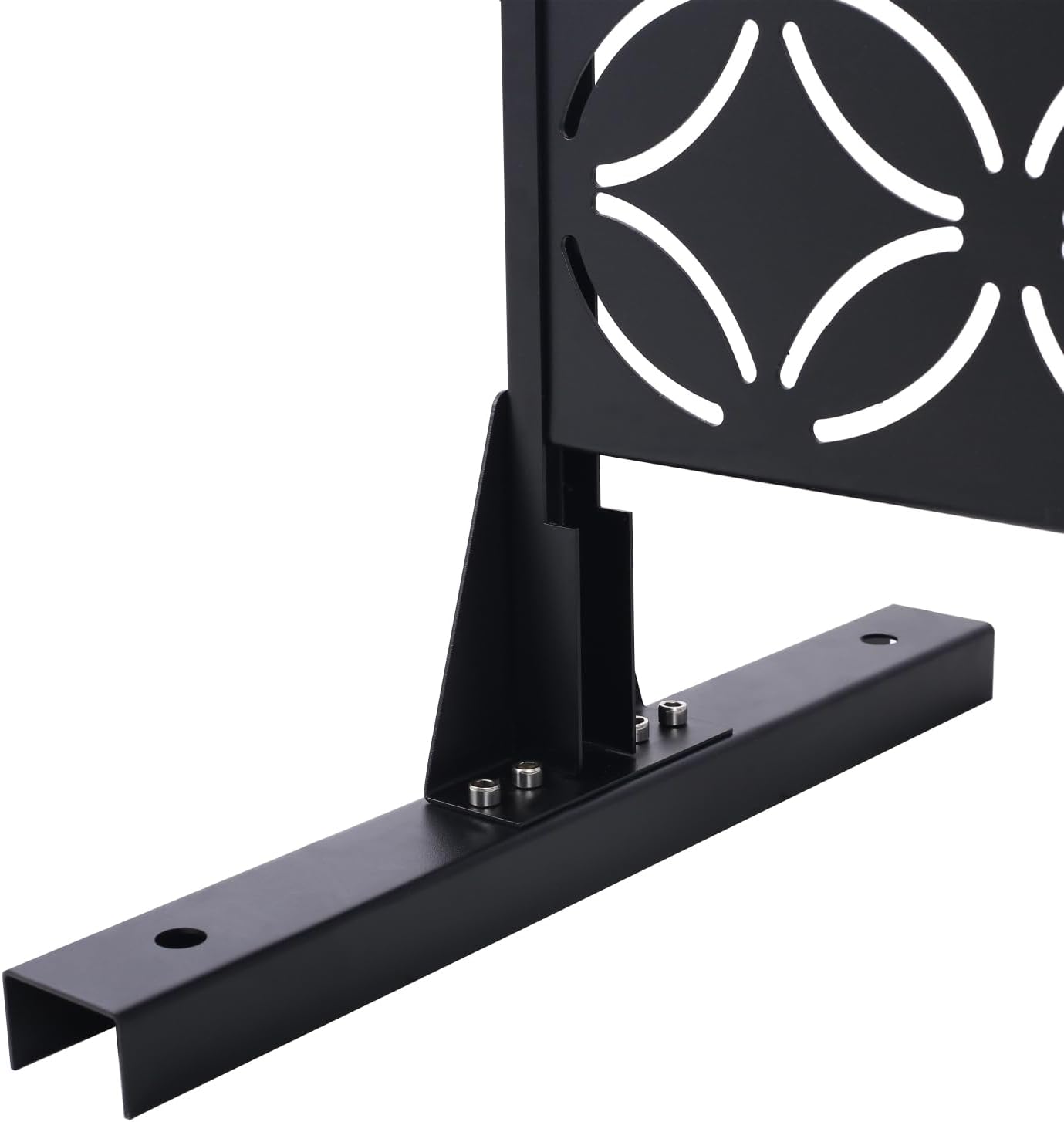 Freestanding Decorative Privacy Screenfor decks, balconies, and patios. Black steel panels , rust-resistant while enhancing visual appeal. Ideal for creating private zones in living rooms, dining areas, or outdoor spaces.Adjustable mounting allows customization for different environments. Sturdy 48"L x 76"H design supports plants, lights, or decorative elements for a personalized look.Material: SteelColor: BlackDimensions: 76" H×48" WPackage Includes: Hardware for installationMounting Type: FreestandingNotes: Resists fading and weather damage