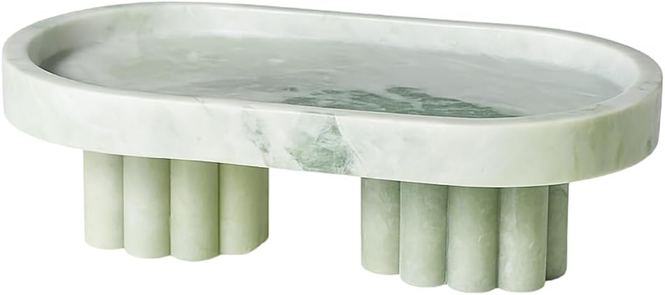 • 100% Natural Clouded Purple Marble—Handcrafted from genuine travertine stone with natural holes and matte texture, this oval marble tray features elegant elevated legs for a touch of organic luxury