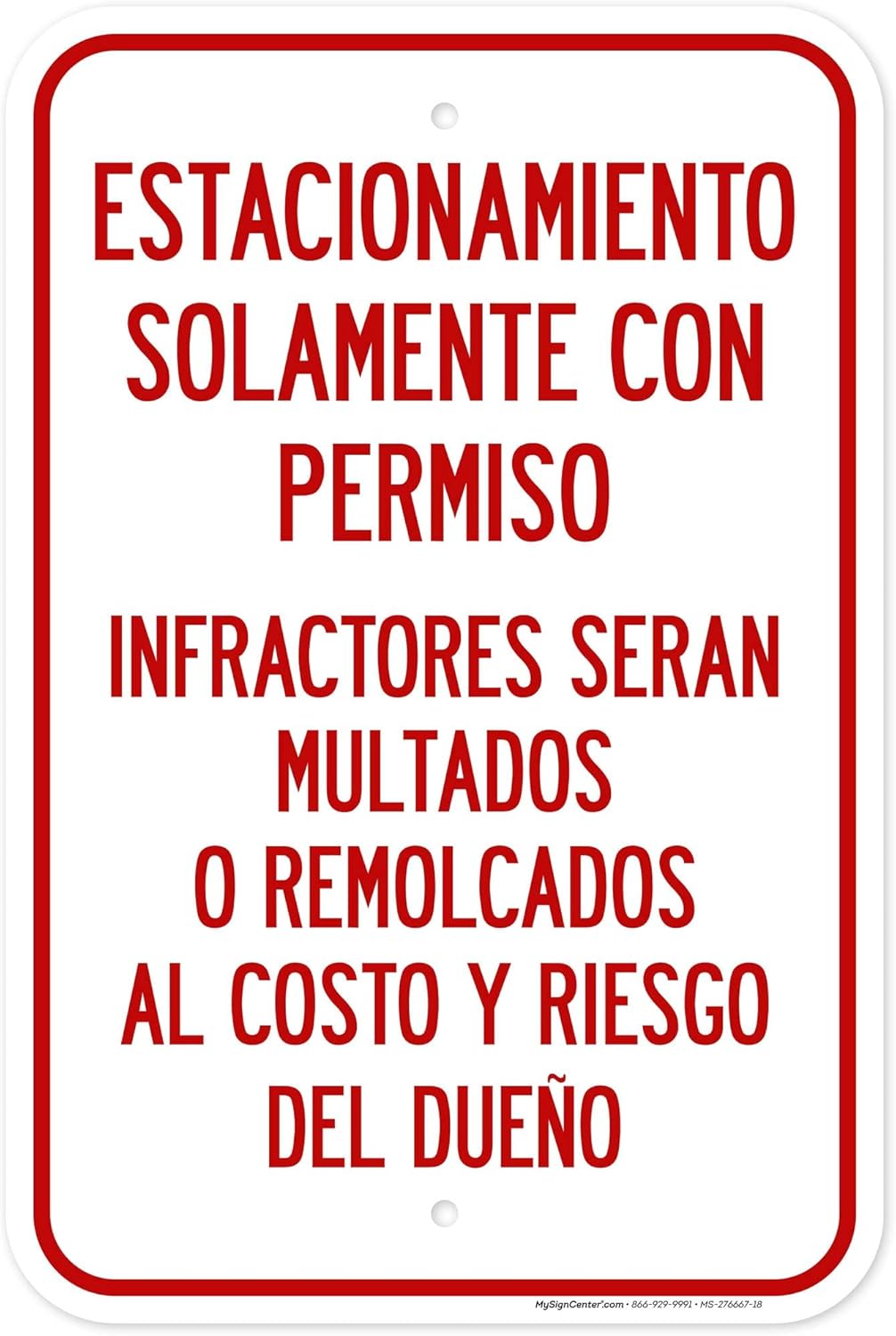Parking With Permit Only Spanish Sign, 12x18 Inches, 55 mil thick HDPS (high density polystyrene), Made in USA by My Sign Center