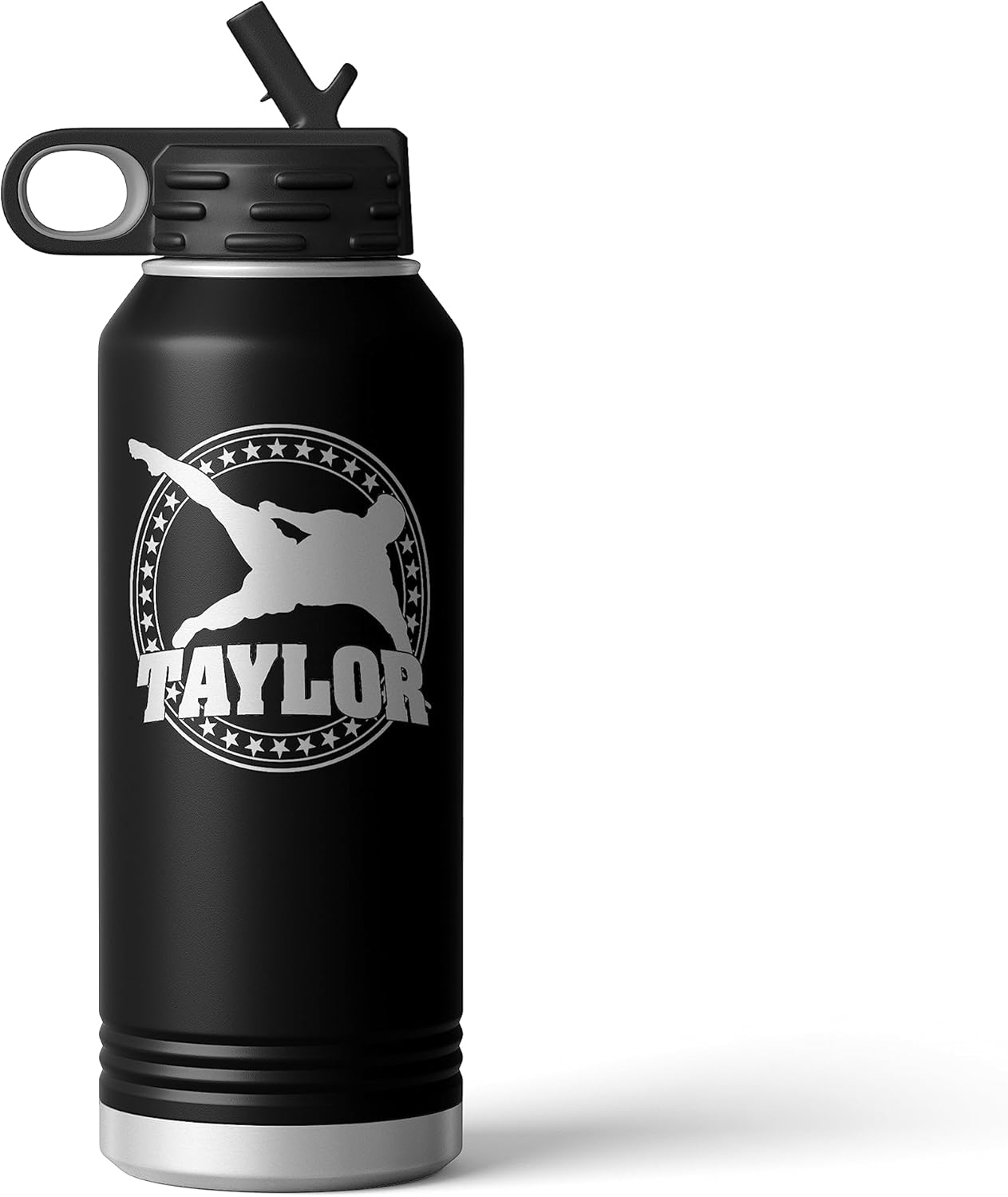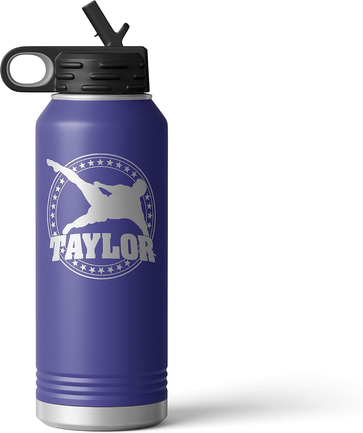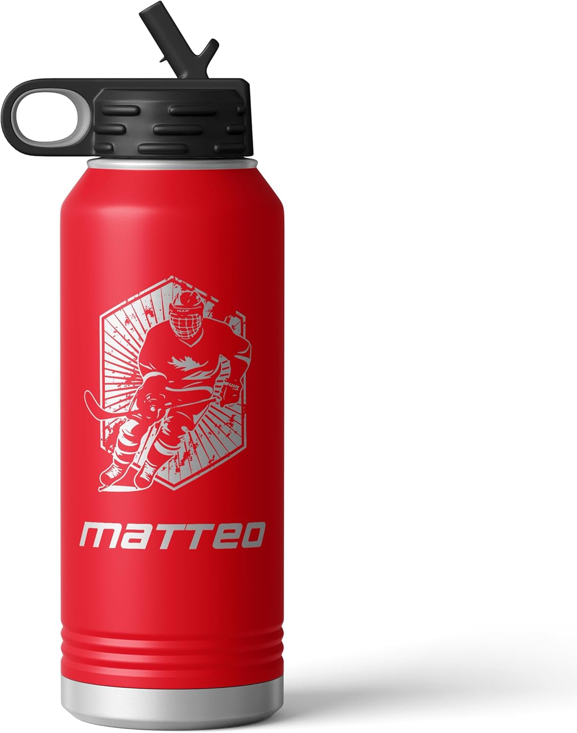 Stay hydrated in style this sports season with our Personalized Sports Water Bottle! Choose From Cheerleading, Soccer, Football, Volleyball, Gymnastics, Wrestling, Basketball, Equestrian, or Lacrosse. Crafted from durable, double-walled vacuum-insulated stainless steel, this 32oz bottle keeps your drinks cold or hot 2X longer, perfect for practices, games, and everyday adventures. With a sleek black sport straw lid for on-the-go sipping and 15 vibrant colors to choose from, you can match your bottle to your team or personal style. Each bottle is custom engraved with your personalization, revealing a stainless steel finish that won’t wash off or fade. This isn’t just a water bottle – it’s your hydration MVP!
