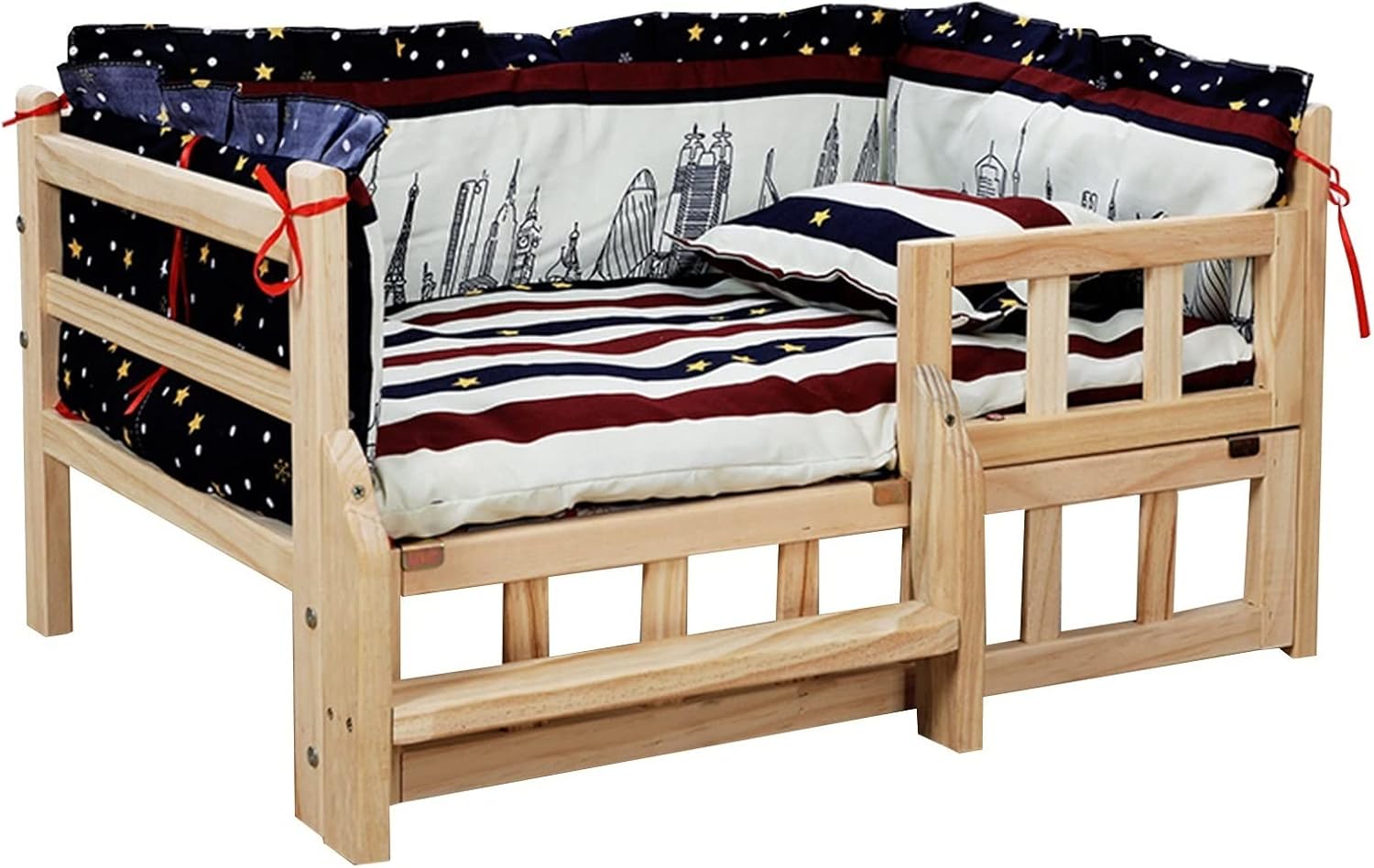 Own this chic pet bed sofa, your pet is a cute princess and prince. Sleeping with an elevated dog bed is more comfortable, cleaner, dryer, and healthier compared to the ground, it is ideal for either dogs and cats, and is the best gifts for your pets.Specification: - Material: Wood Frame + Wood Fiber Bed Board- Type: Elevated Pet BedFeatures: - Keeps your pet away from the cold, tough floor, mud and wet grass. - Solid wood frame, polished smooth, easy to assemble and disassemble. - The slatted base gives your pet sturdy and stable support, without sagging or loss of shape.- Ideal for all breeds and ages of dogs, cats and pets.- Allowing your pet to enjoy a deeper, more restorative sleep.- A perfect gift for your dogs, cats and pets.Package Content: - 1 x Pet Bed - 1 x Pet Mattress- 1 x Pet Pillow (Not including other ornaments).Suggest: - Place a chew toy for your pet, in hopes your dog will chew the toy and not the pet bed!- Please avoid any scratches, we would propose cutting your dog's nails frequently.Warm Prompt:- Pet beds are designed for pet use only.- Due to light and personal differences in color understanding, there will be small color difference, in kind, prevail.- Due to different measurement methods, the error is generally 1-2 cm, and the error range is not within the quality range.Service Guarantee:- We provide high-quality 24- customer service. For any questions about the pet bed, please contact us as soon as possible, and we will answer and solve your questions.