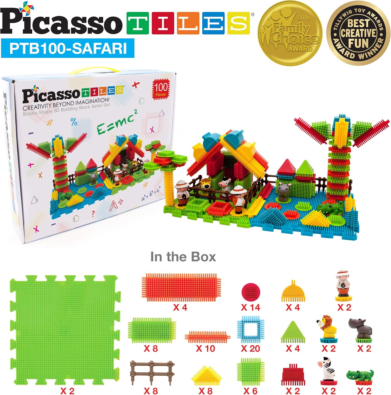 PicassoTiles 0.5” Pixel Magnetic Puzzle Cube 400 Piece Mix & Match Cubes Sensory Toys STEAM Education Learning Building Block Magnets Children Construction Toy Set Stacking Magnet Creative Kit PMC400, PicassoTiles PTB100 100pcs Bristle Lock 3D Building Blocks Tiles Safari Theme Set Learning Playset STEM Toy Set Educational Kit Child Brain Development Preschool Kindergarten Toy for Age 3 & Up