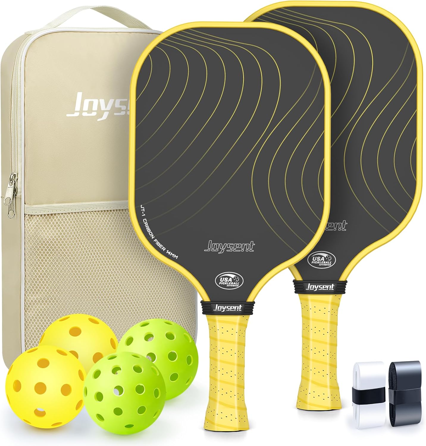 Joysent Pickleball Paddles Set, USAPA Approved Carbon Fiber Pickleball Set of 2 with Beginner Pickleball Rackets, Indoor Outdoor Pickle Balls for Adults Men Women, JT-1
