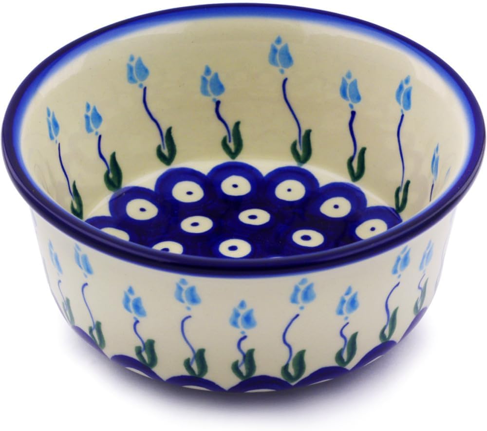Genuine Polish Pottery handmade in Boleslawiec, Poland. Region celebrated for its long-standing ceramic tradition and artisanal craftsmanship.This authentic, hand-painted Polish stoneware Bowl in the Golden Flower Garden pattern is handcrafted by Ceramika Bona using traditional hand-painting and high-temperature firing techniques for lasting durability and everyday functionality.Certificate of Authenticity:Includes an official certificate verifying the handmade origin and authenticity of the piece.Care Instructions:Your order includes care instructions and helpful information, especially useful when gifting Polish Pottery.Dimensions:2.3" high, 5.3" wide, 5.3" long (max outside edge or handle).Capacity: 15 oz (filled to the rim).Certified Polmedia Polish Pottery Features:* Lead & Cadmium Free: Safe for everyday use.* Microwave Safe: Heat food or drinks with confidence.* Dishwasher Safe: Pattern will not fade.* Oven Safe (up to 480F): Excellent for baking and reheating.* Freezer Safe: High-fired stoneware handles temperature changes.* Chip & Scratch Resistant: Durable for daily use.* Hand-Painted Artistry: Decorated by skilled artisans.* Never-Fade Colors: Patterns remain vibrant forever.The Essence of Polish Pottery:For generations, artisans in Boleslawiec have crafted stoneware valued for durability, heat distribution, and long-lasting beauty. This tradition continues today in every piece of Polish Pottery.