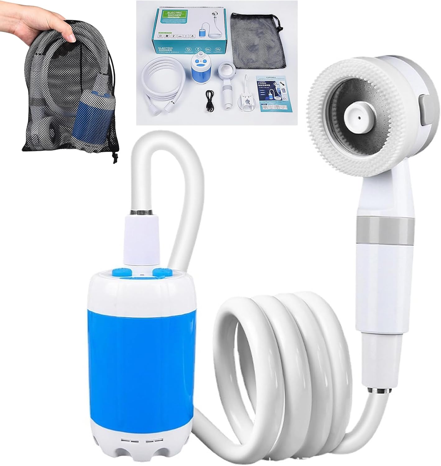 | Included Components | 1x shower pump 1x shower head 1x hose 1x rinsing nozzle 1x charging cable 1x suction cup bracket |