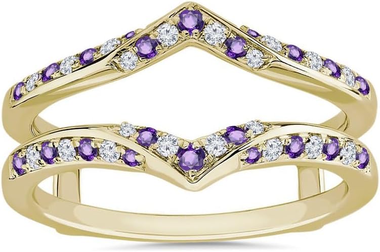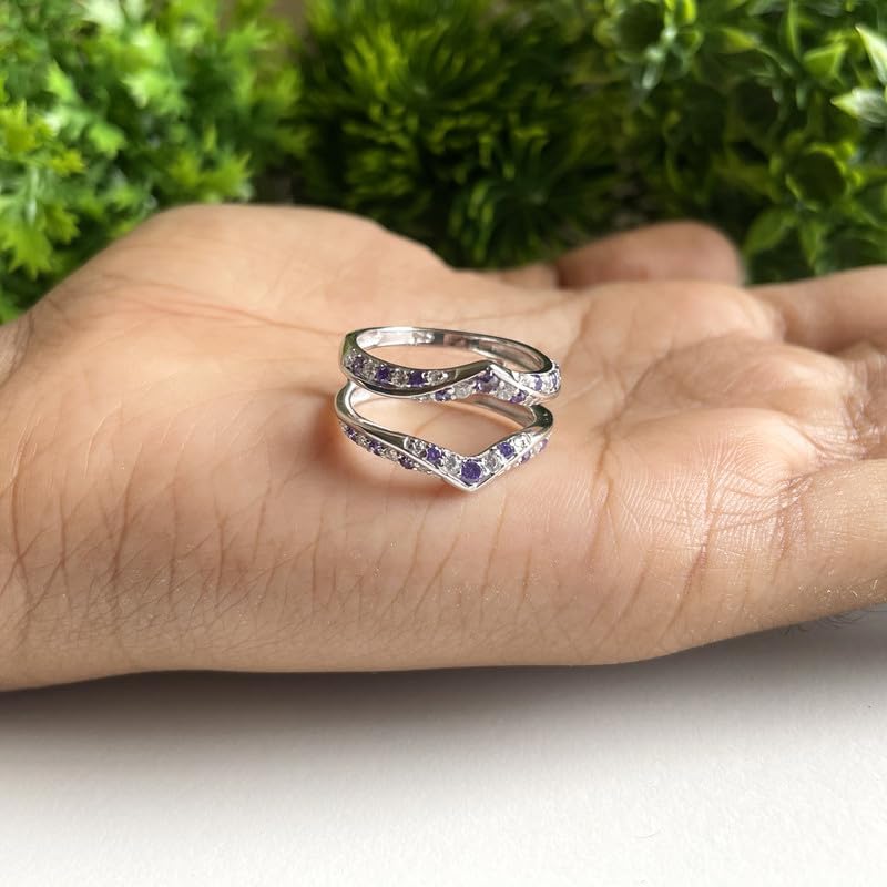 This Band Crafted in 925 Sterling Silver, available in 14K White, Yellow and Rose Gold Plating. Round Cut simulated Amethyst & Diamond set in prong setting.