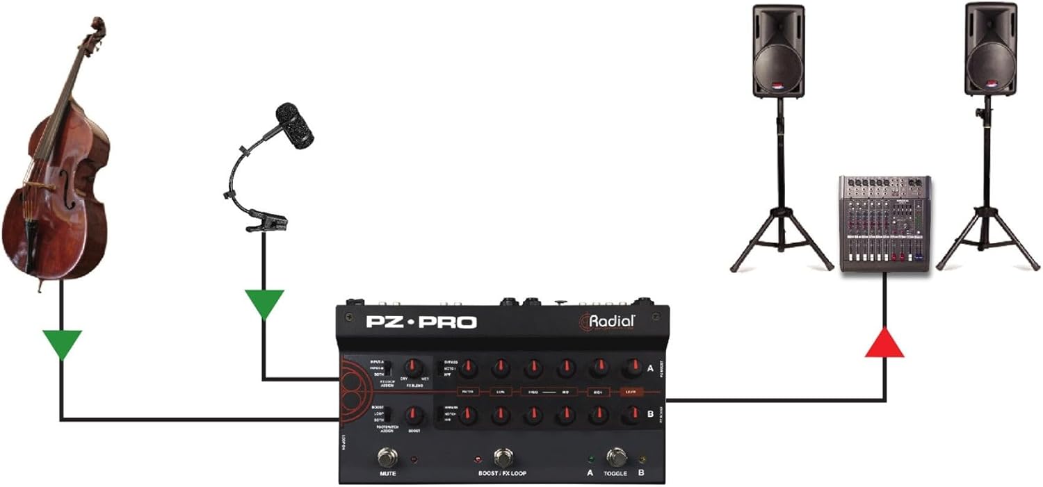 Say Hello to Your New Favorite Acoustic Preamp Have you been looking for an acoustic preamp and DI with more flexibility than you’re used to? Consider the Radial PZ-Pro! This 2-channel acoustic instrumental preamp gives you independent switchable control over two separate sources. Each channel has an independent 3-band EQ and filter section to dial in your signal with ease. The PZ-Pro can handle a wide range of inputs. Channel 1 handles piezo and magnetic pickups with ease. Channel 2 offers instrument and mic inputs with switchable phantom power to accommodate dynamic and condenser microphones alike. It even has a switchable effects loop for performers who use stompboxes. To get more from an acoustic preamp, Sweetwater recommends the Radial PZ-Pro 2-channel acoustic preamp.Impressive flexibility The Radial PZ-Pro’s flexible tone-shaping options make it a necessity for solo performers. Each channel has an independent 3-band EQ and filter section that can be