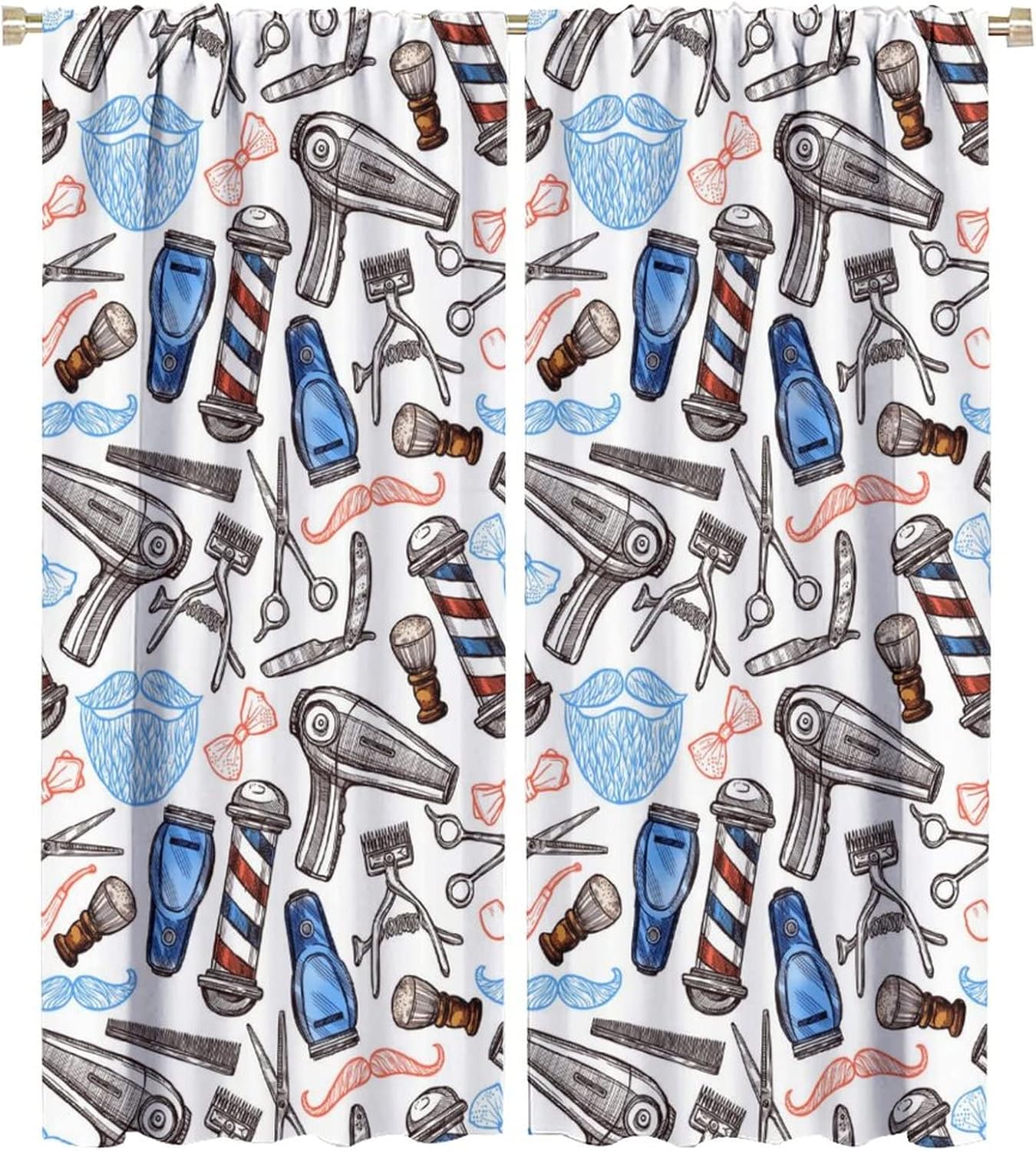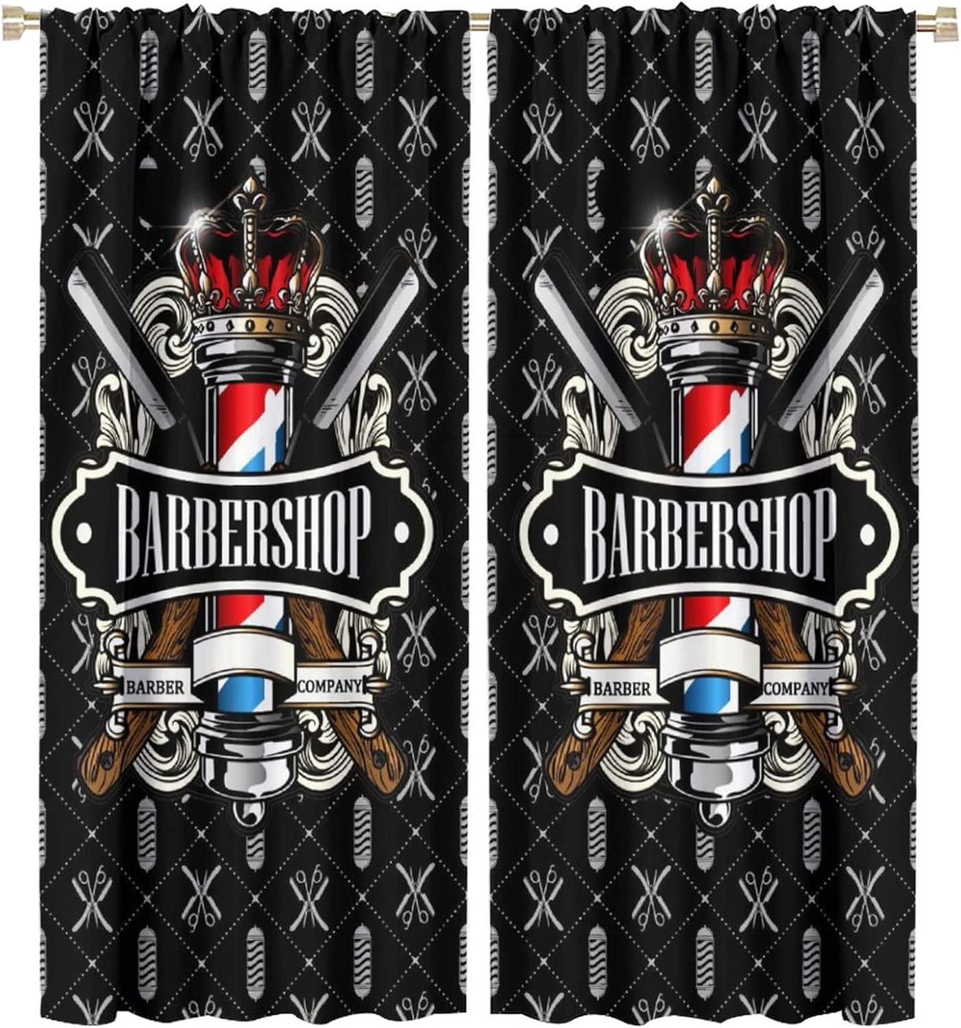 This Retro Barber Shop Curtains can block out 85%-99% sunlight and UV ray ( Darker colors work better), perfect for late sleepers and afternoon naps. Our energy saving curtains insulate against summer heat and winter chill to balance your room temperature, reduce outside noise .This Retro Barber Shop Curtains liven up your indoor or outdoor spaces with a sense of airiness and beauty.These Retro Barber Shop Curtains are suitable for the bedroom, living room, dining room, infant room, kids room, office or other public place.Material:Polyester high quality fabric curtains, warm and interesting, beautifully designed.Kindly Remind:- Don't use sharp things scratching curtains.- For proper fullness panels should slightly larger than the window size the width of your window.- 24 Hours customer support.- As different computers display colors differently, the color of the actual item may vary slightly from the above images.