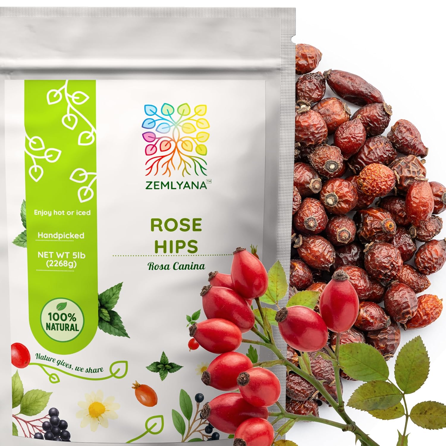 Experience the power of whole dried rose hips (Rosa Canina) – a time-honored botanical ingredient naturally rich in tart, fruity flavor and used for centuries in herbal teas and traditional wellness blends. These wildcrafted rosehip berries are hand-harvested in the clean meadows of Ukraine during late autumn, when the fruit reaches peak ripeness. To preserve their vibrant color and full flavor, we gently dry our rosehips indoors at low temperatures – never sun-dried, never irradiated. Each resealable, foil-lined pouch contains pure, unsweetened dried rose hip — no additives, no fillers, no GMOs. Whether you're steeping a comforting rosehip tea, crafting your own loose leaf herbal blends, or preparing homemade jam or skincare infusions, these berries deliver clean, natural versatility. ✅ Product Highlights: 100% Whole Rosa Canina Naturally caffeine-free herbal tea ingredient Tart, citrusy flavor with a smooth finish Perfect for rosehip tea loose leaf, jam, syrup, DIY crafts Foil-lined, resealable pouch for long-lasting freshness At Zemlyana, we offer herbs harvested with care and prepared with integrity. Our mission is to bring you clean, honest botanicals — just as nature intended. Nature gives, we share.