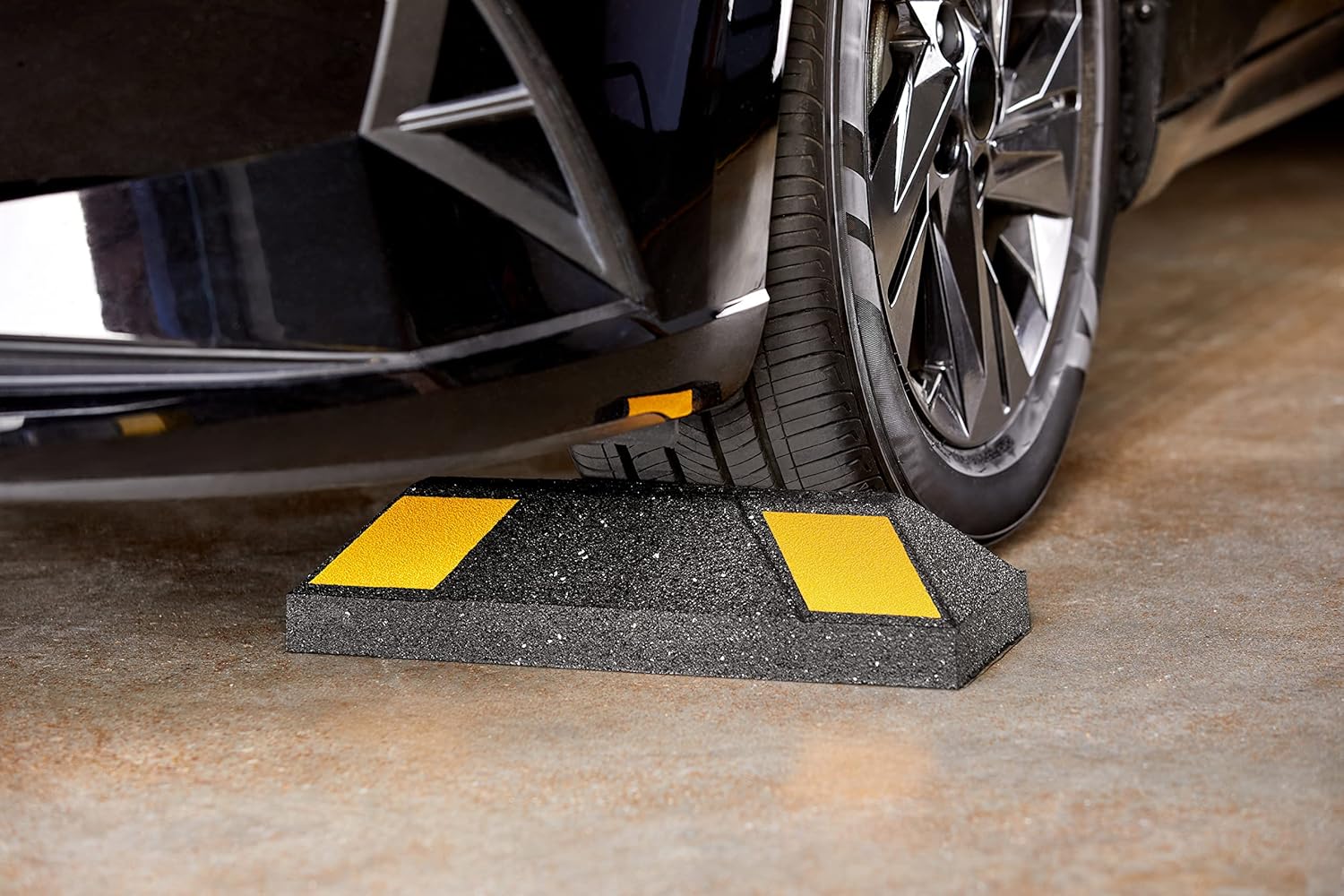 Tired of running into valuable items in your garage, including the walls, because you thought you had a little more space to park? Protect your vehicle and garage walls with the Rubberific parking stop. Vehicles are getting larger and larger making sightliness even more difficult when it comes to parking. With the Rubberific parking stop, there is no more guessing or second-guessing where to park your vehicle. Just gently pull into your garage and let the Rubberific parking stop let you know when your vehicle is in the position of your choice. Rubberific Parking stops are manufactured with two heavy-duty Velcro brand strips for fast and secure installation. Included Adhesive Velcro makes indoor installation as easy as 1,2,3!