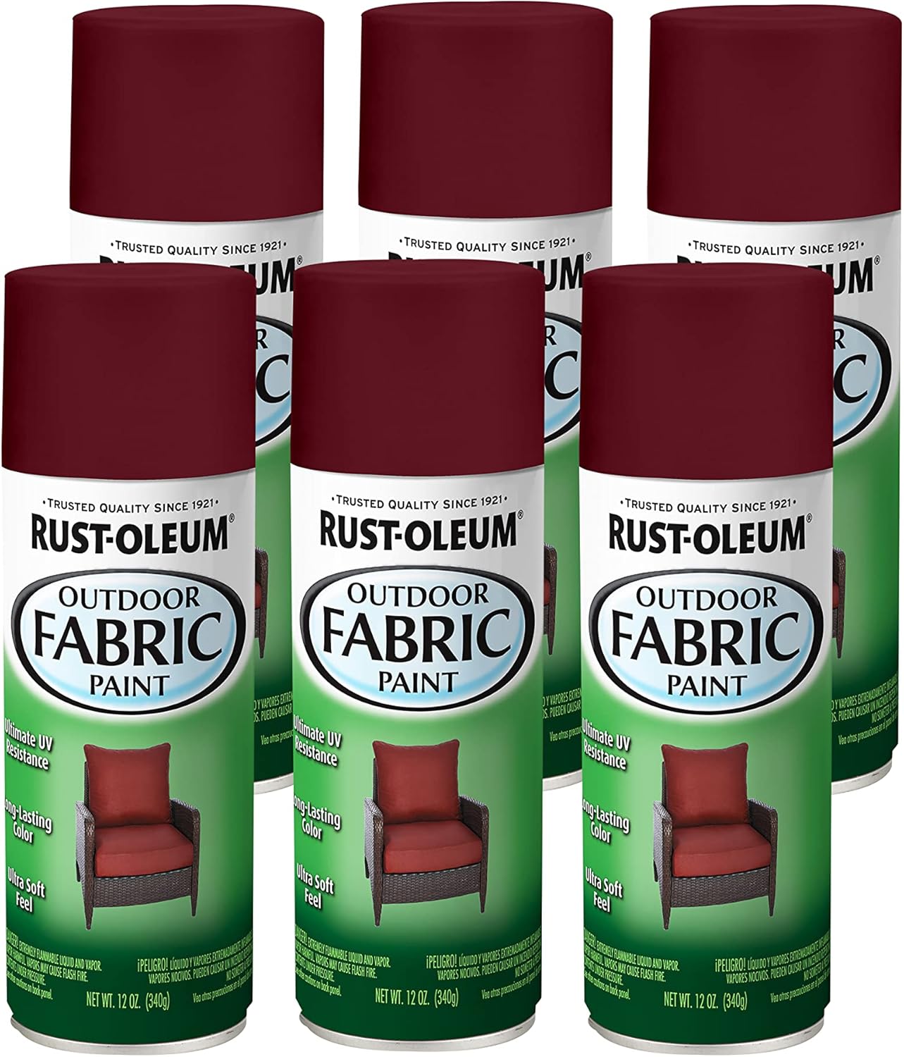 Rust-Oleum Specialty Outdoor Fabric Spray Paint is the fast and effective way to update or recolor outdoor fabrics at a fraction of the price of replacing them. The unique spray provides rich color that repels water and resists UV damage and fading, all while remaining exceptionally flexible and soft in texture. It creates a durable, touchable surface and easily adheres to most outdoor furniture cushions, pillows and more.