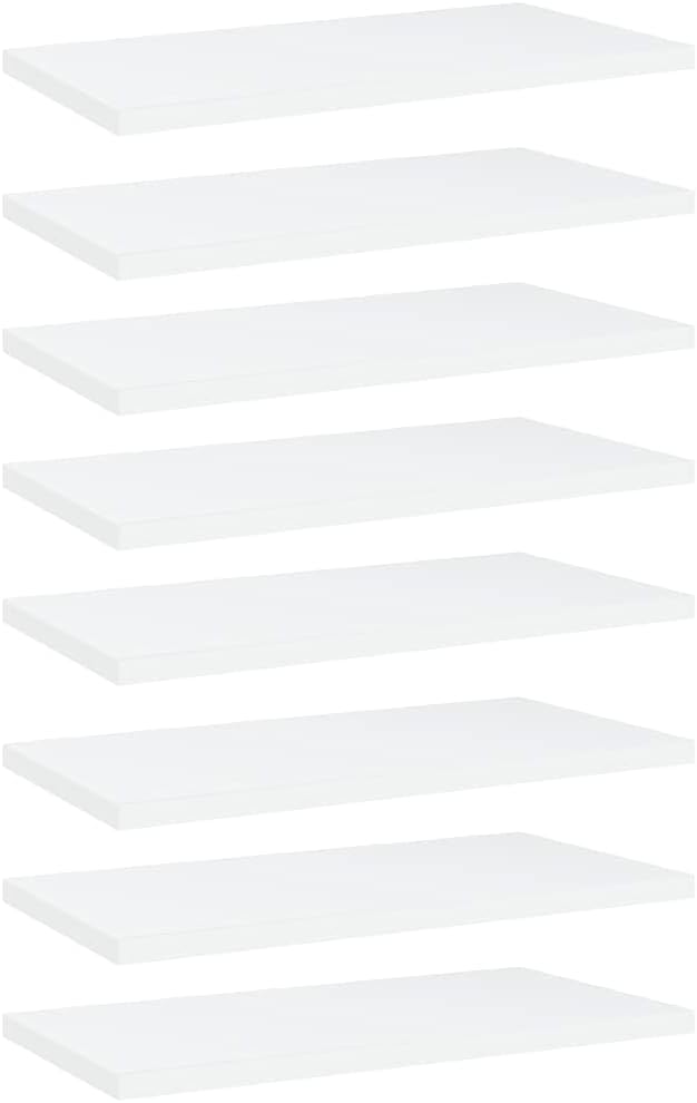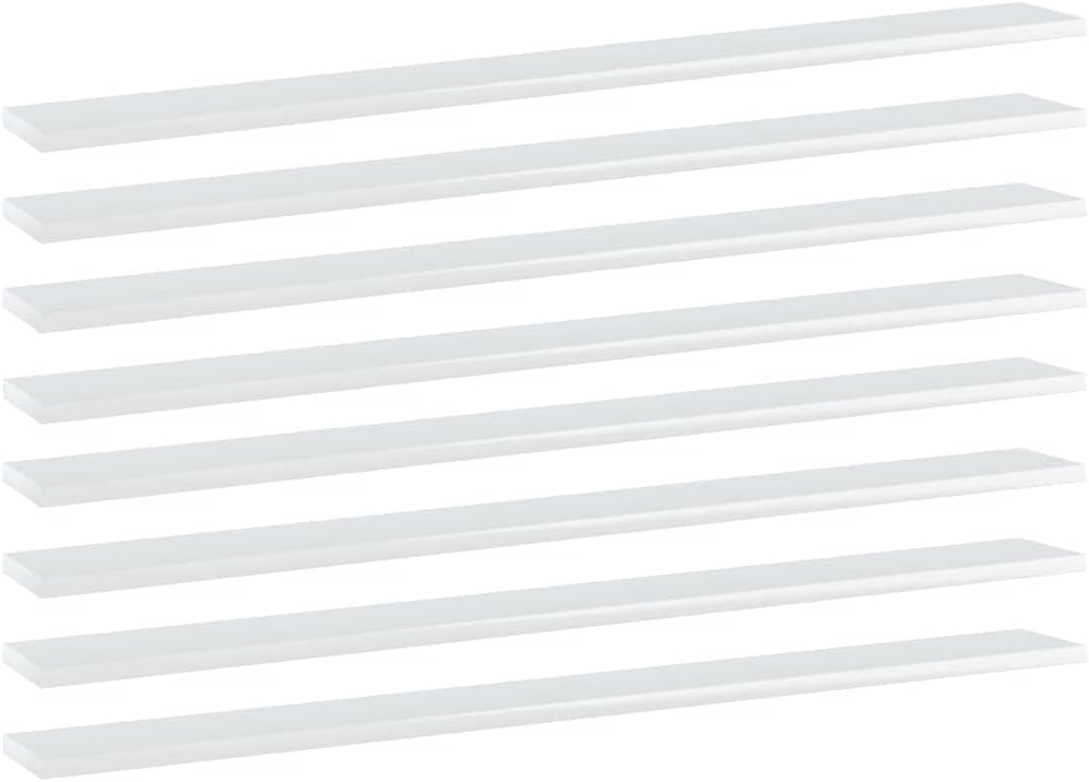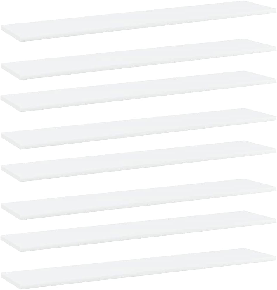 Do you need more storage options but don't have any spare space? These simplistic bookshelf boards are the perfect solution.These shelves are made of quality engineered wood. Additionally, the bookshelf panel is easy to clean with a damp cloth. You can add it to your existing furniture for additional storage space or use it as a replacement when the old boards are worn out or damaged for any reason.Color: WhiteMaterial: Engineered woodDimensions: 39.4" x 3.9" x 0.6" (W x D x H)Delivery contains:8 x Bookshelf board
