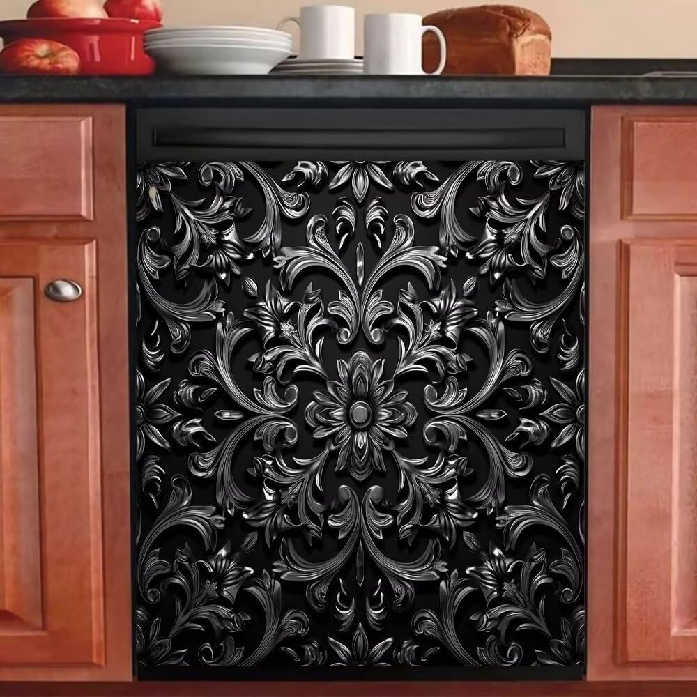 Elevate Your Kitchen’s Style with Our Stunning Dishwasher Magnet CoverTransform your dishwasher into a stylish focal point with this decorative dishwasher cover magnet. Featuring an intricate design of swirling scrolls and elegant flourishes, this magnetic dishwasher cover panel adds a touch of sophistication to any modern kitchen. The refined gray and silver tones blend seamlessly with various kitchen decors, while the raised metallic accents create a captivating 3D effect.Premium Protection & Effortless InstallationCrafted from high-quality magnet sheet + printed vinyl + lamination, this dishwasher magnet cover not only enhances your appliance’s appearance but also protects it from scratches, dents, and unsightly marks. The magnetic refrigerator cover-inspired design ensures a quick, no-residue installation—simply trim to size and stick!Why Choose Our Dishwasher Cover? Customizable Look – Choose the perfect dishwasher sticker to match your home décor. Strong Magnetic Hold – Securely attaches to any metal dishwasher or refrigerator wrap for a seamless fit. Durable & Scratch-Resistant – Long-lasting protection while concealing flaws effortlessly. Easy to Remove – No sticky residue, making repositioning or replacement hassle-free.Available Sizes:23" W x 17" H23" W x 26" HNote: Due to monitor calibration differences, colors may vary slightly.