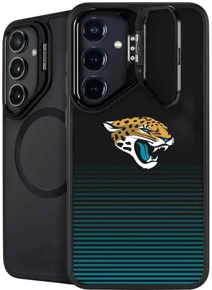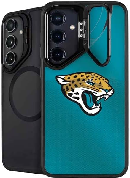 The NFL Jacksonville Jaguars Black & White Kickstand Case compatible with Galaxy S25 is the ultimate in versatile protection and convenience. Featuring an innovative lifted camera ring with a built-in stand, it allows hands-free video watching with adjustable angles from 0 to 150 degrees. This premium Jacksonville Jaguars Case supports wireless charging and is fully compatible with MagSafe, offering a sleek design without compromising on durability or functionality.