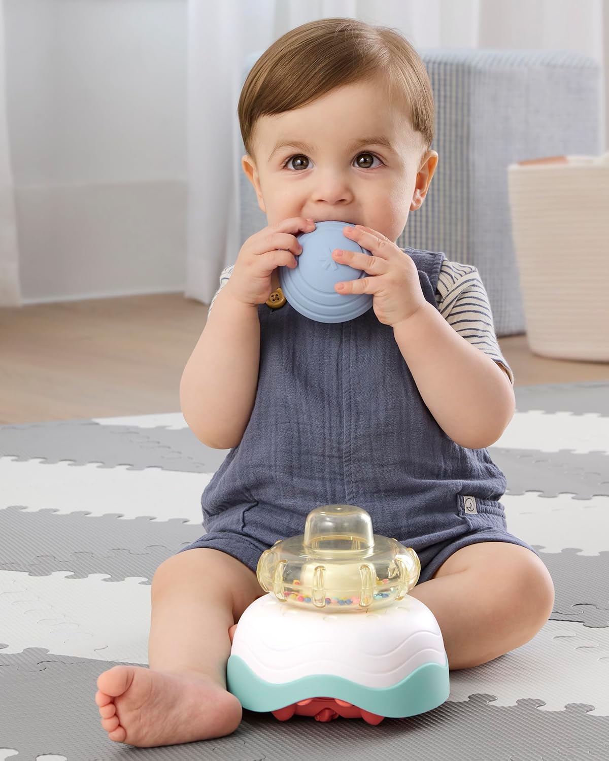 If you’re looking for toys to help baby crawl, you won’t “bee” disappointed with this one! Designed to grow with your baby through three stages, our motorized crawl toy challenges and encourages little ones learning to crawl with colorful lights, energetic tunes and sweet buzzing sounds.