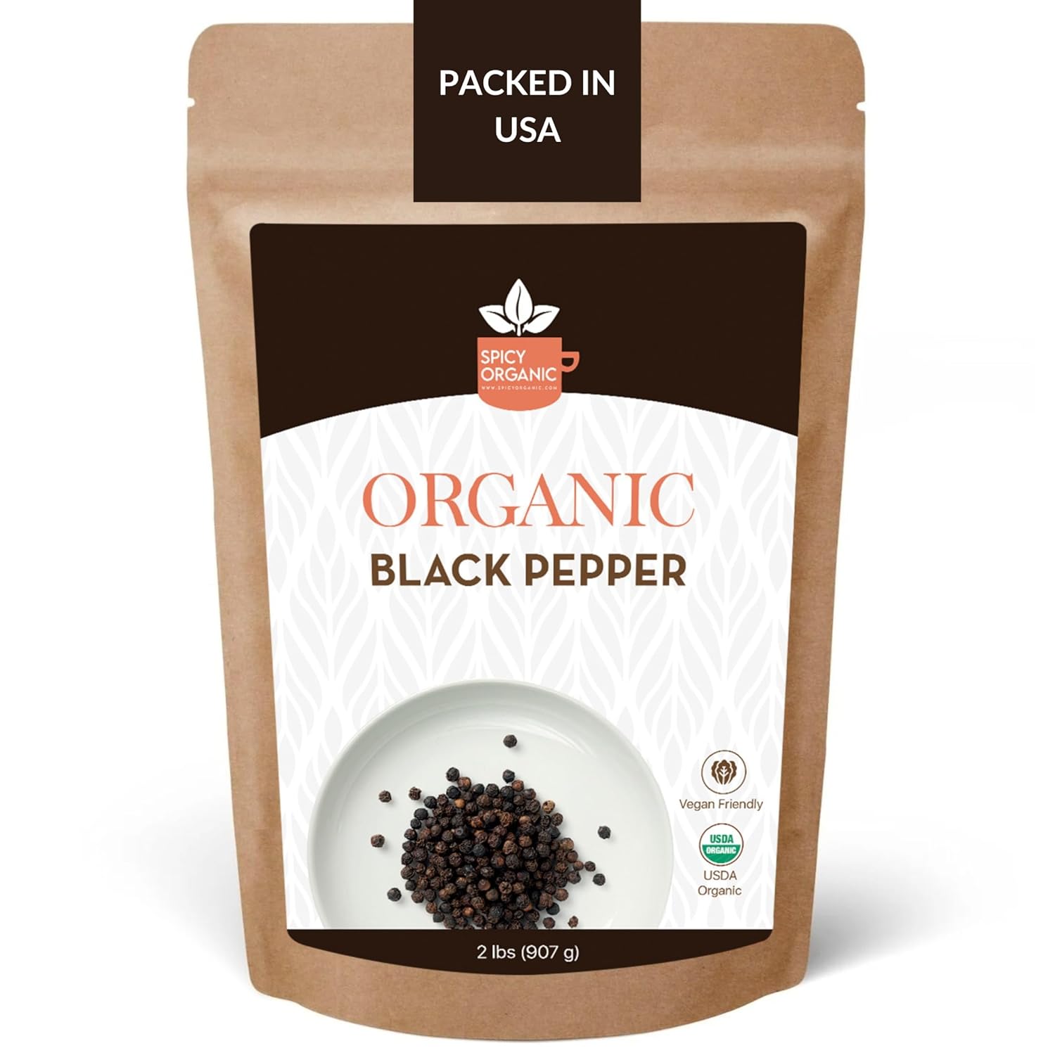Elevate your culinary experiences with our organic whole black pepper. Ideal for every kitchen, these premium peppercorns are perfect for refilling your grinder, ensuring you have the freshest ground spice at hand. USDA Certified Organic and non-GMO, our pepper maintains its natural flavor and health benefits. Whether you're seasoning meats or enhancing soups, our black pepper adds a zest that transforms your dishes. Benefit from its rich antioxidants with every flavorful pinch. Your meals deserve the spice that stands the test of time.