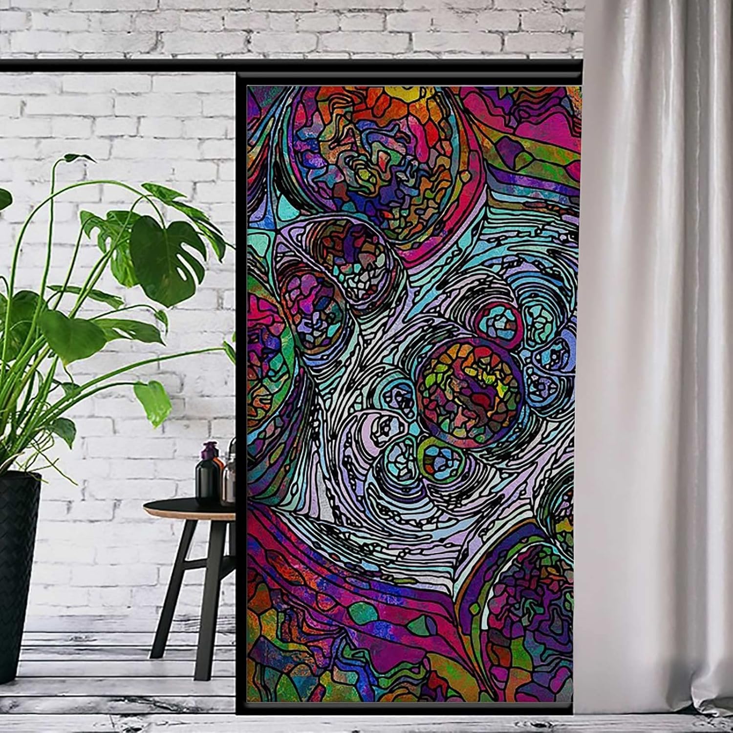Revamp your windows with premium pvc privacy filmTransform your windows into a stunning piece of art with our premium pvc self-adhesive window film. offering 95% uv protection, this film is perfect for protecting your skin and furniture from harmful sun damage while giving you the ability to customize your home décor.Our unique patterns offer privacy protection, ensuring you feel safe in your own space. this user-friendly film can be installed without toxic glue - all you need is soapy water. plus, removing it is effortless, leaving no residue or damage.The pvc material provides extra durability and allows you to reuse and reposition the film multiple times. with six available sizes (45x60cm, 60x90cm,60x120cm,60x200cm,90X150cm,90x200cm), you can install it on any window in your home.Here's how to install:1.Clean and measure your windows carefully.2.Cut the film to the size you need.3.Remove the essential backing film (transparent film).4.Spray ample water on your window.5.Apply the film on the glass with the smooth side facing the inside.6.Squeeze out excess water and air using a scraper from top to bottom.7.Dry windows thoroughly and admire the new look!8.Give your windows an elegant makeover with our pvc privacy film today!
